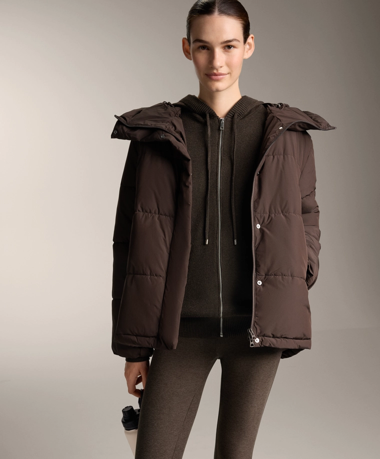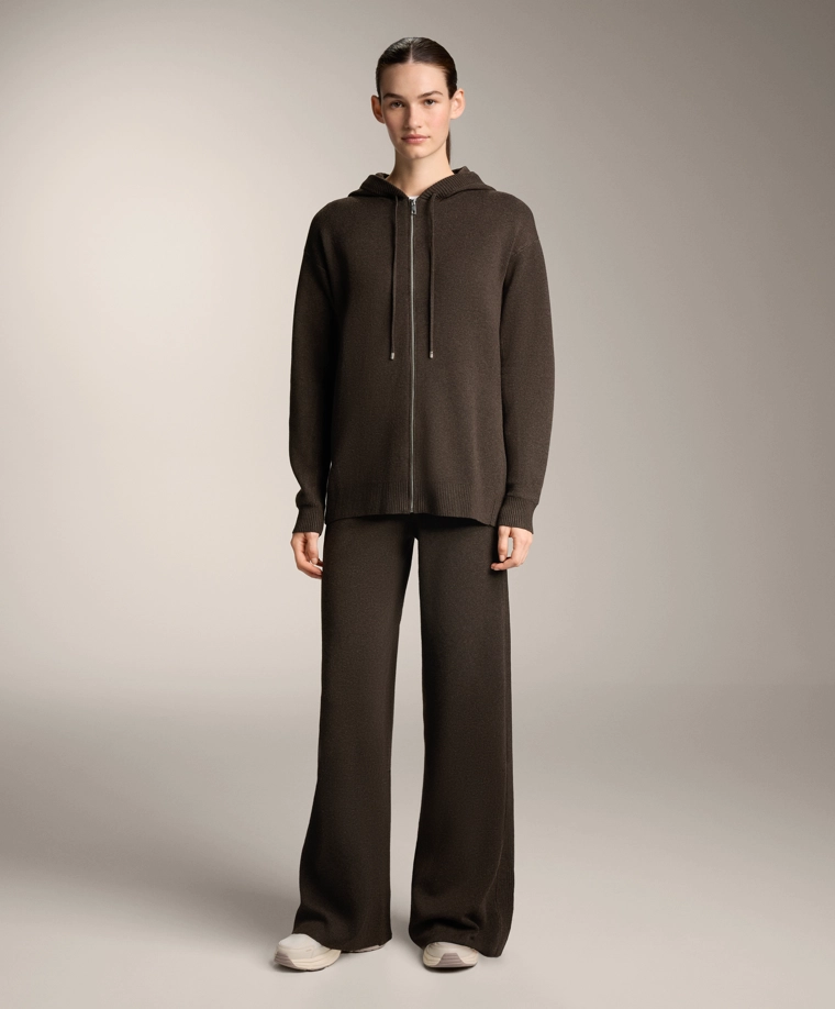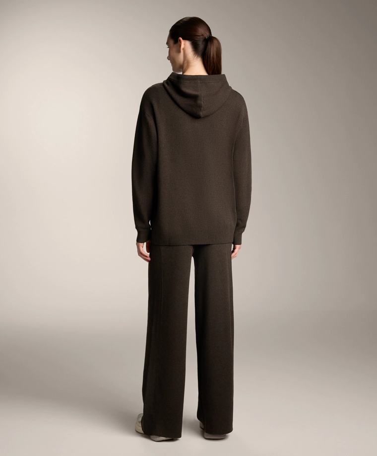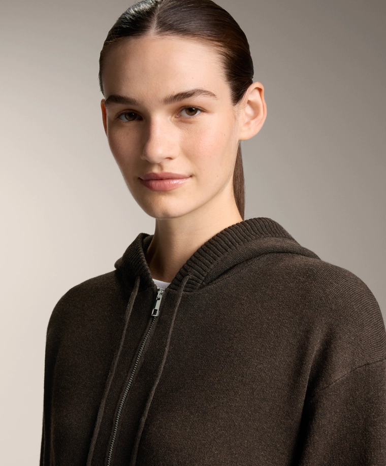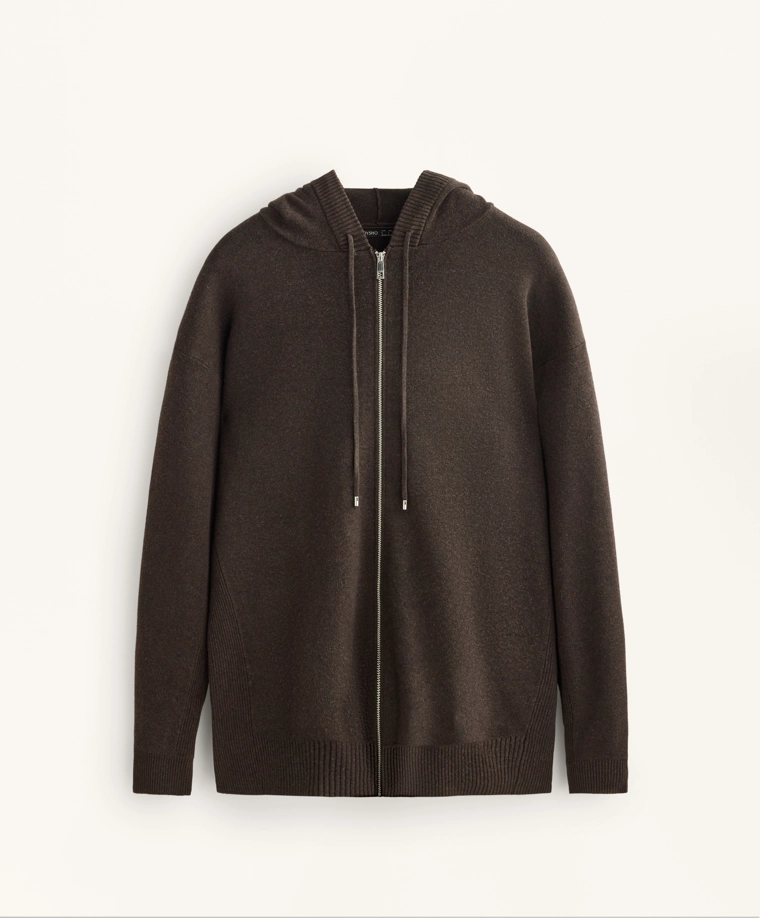 Long knit cardigan with hood BROWN|3897/880
