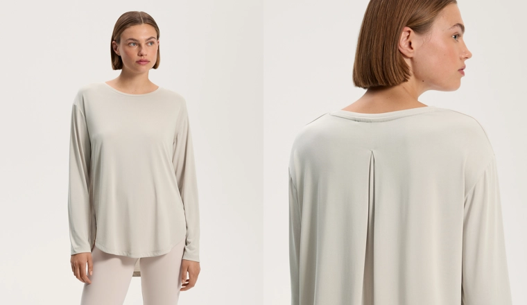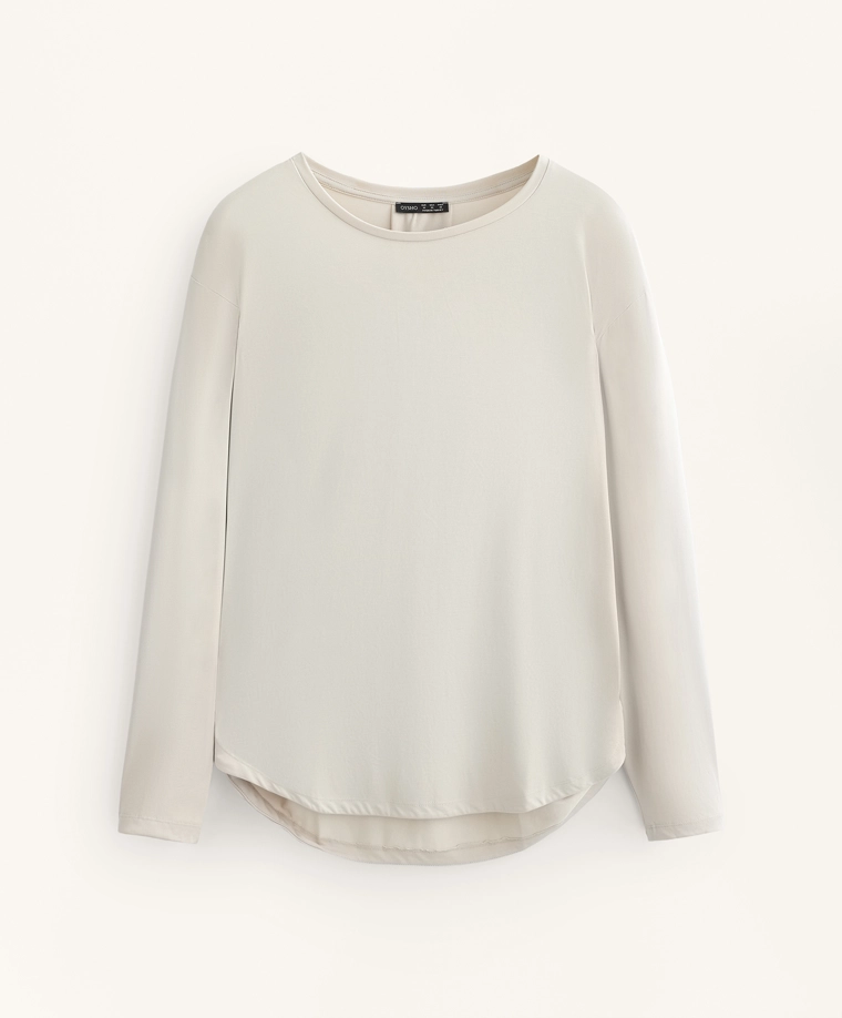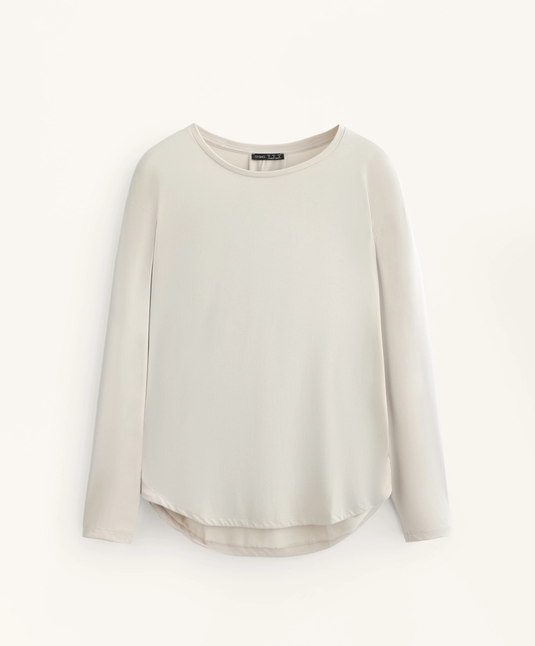 Long sleeve T-shirt with back pleat in a modal blend PALE MINK|0609/314