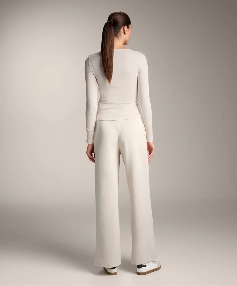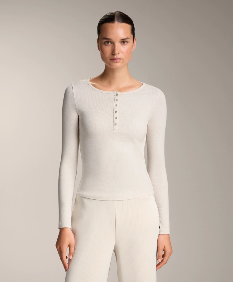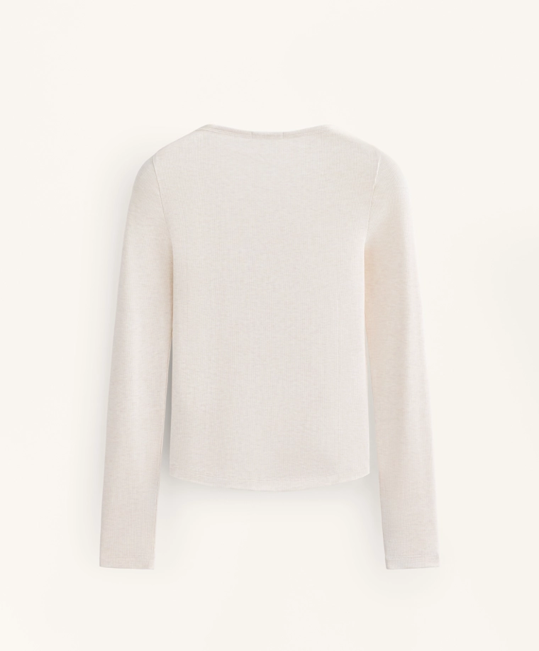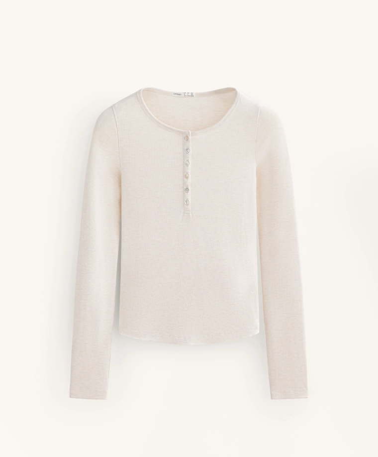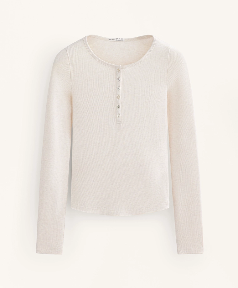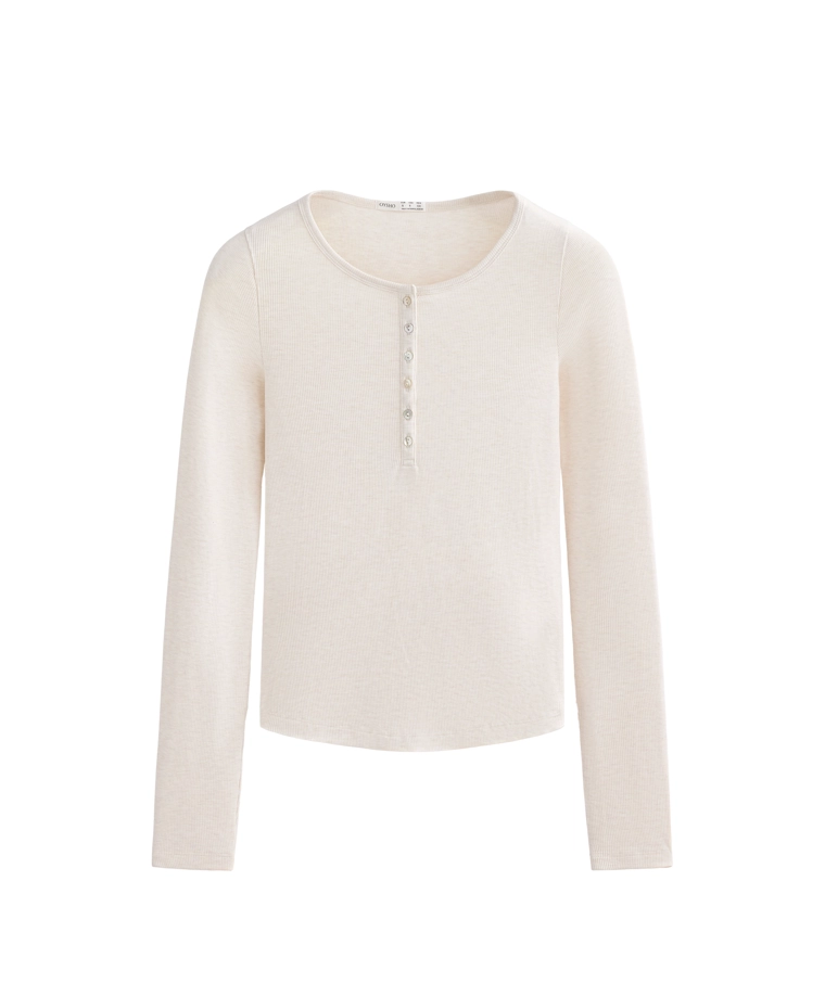 Long-sleeve button rib T-shirt with cotton and modal SAND MELANGE|0648/662