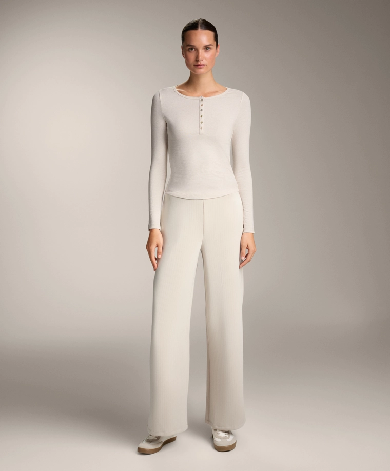 Long-sleeve button rib T-shirt with cotton and modal