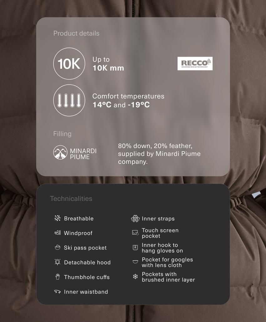 MINARDI PIUME SKI water-resistant light padded down jacket DARK BROWN | 0526/626/716