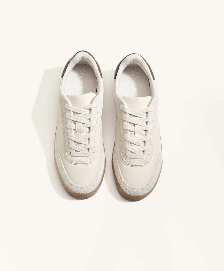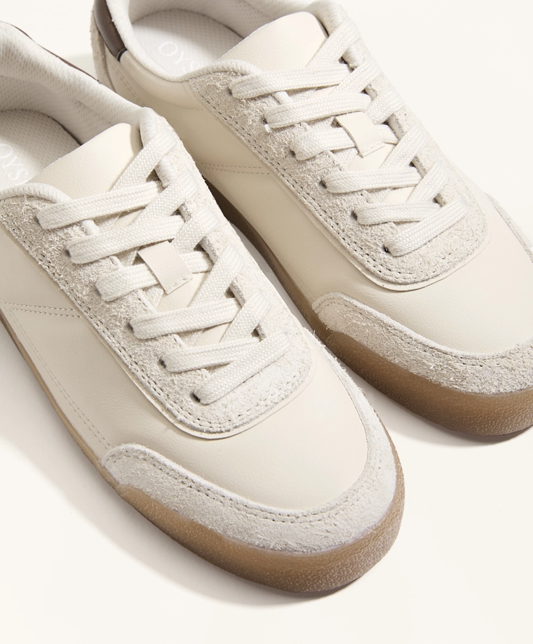 Nylon trainers with split-leather pieces ECRU|1153/680