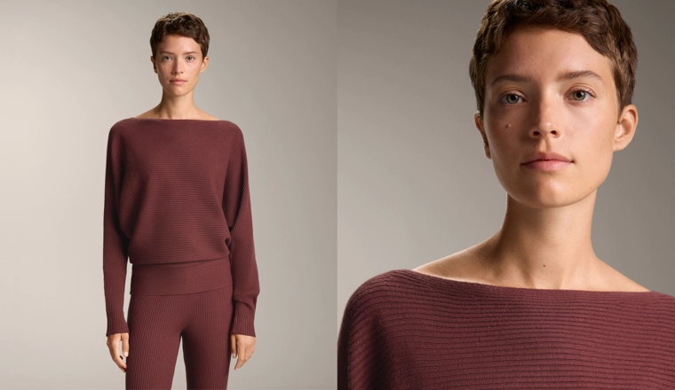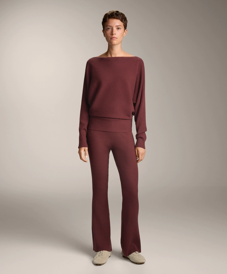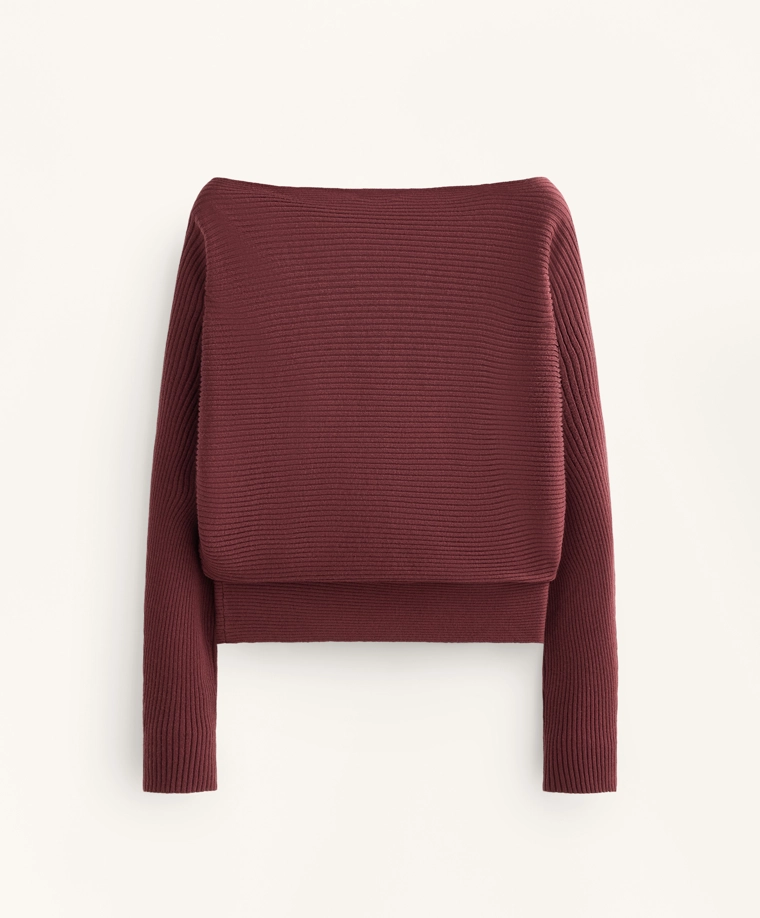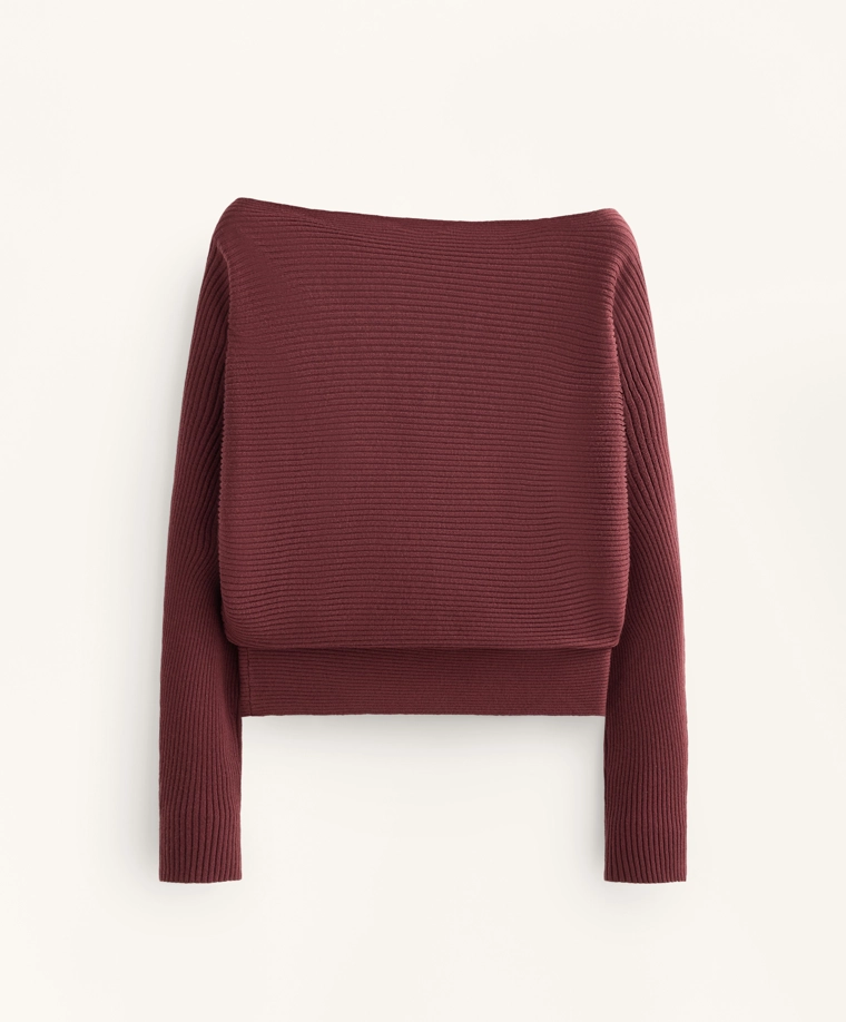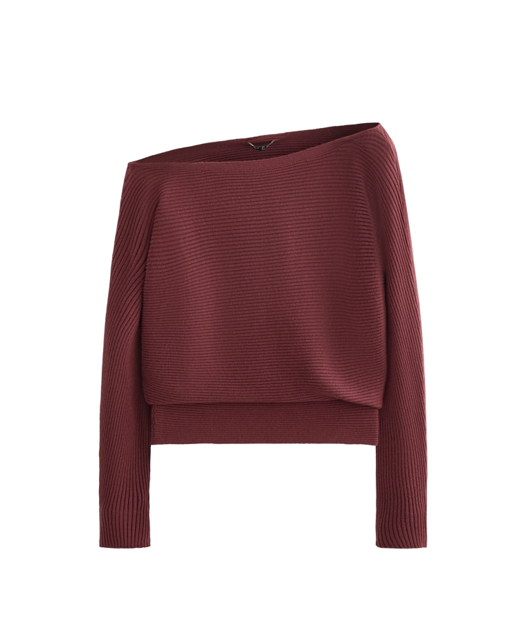 Off-the-shoulder rib knit jumper MAUVE MELANGE|3665/120