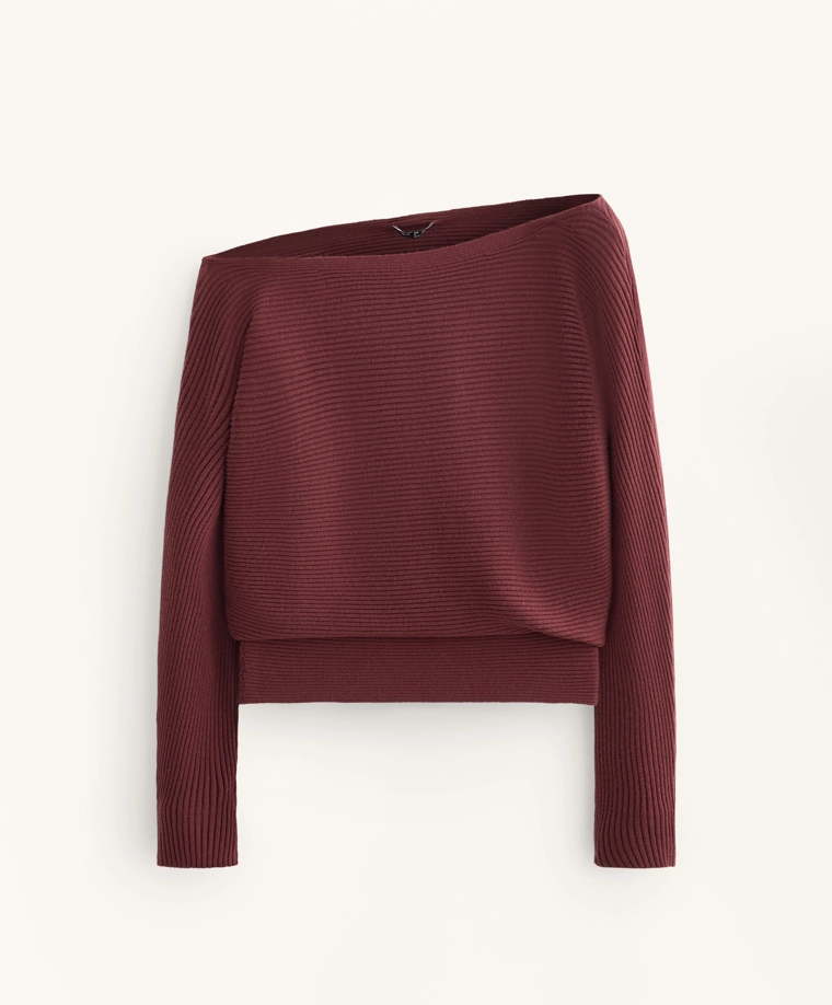 Off-the-shoulder rib knit jumper