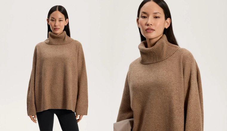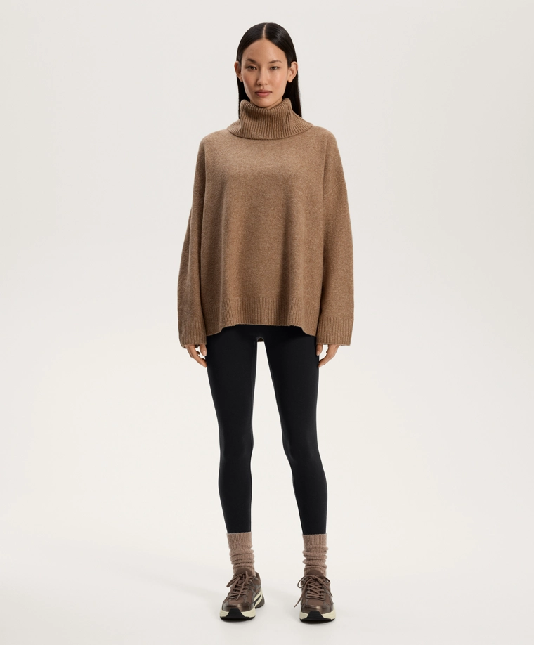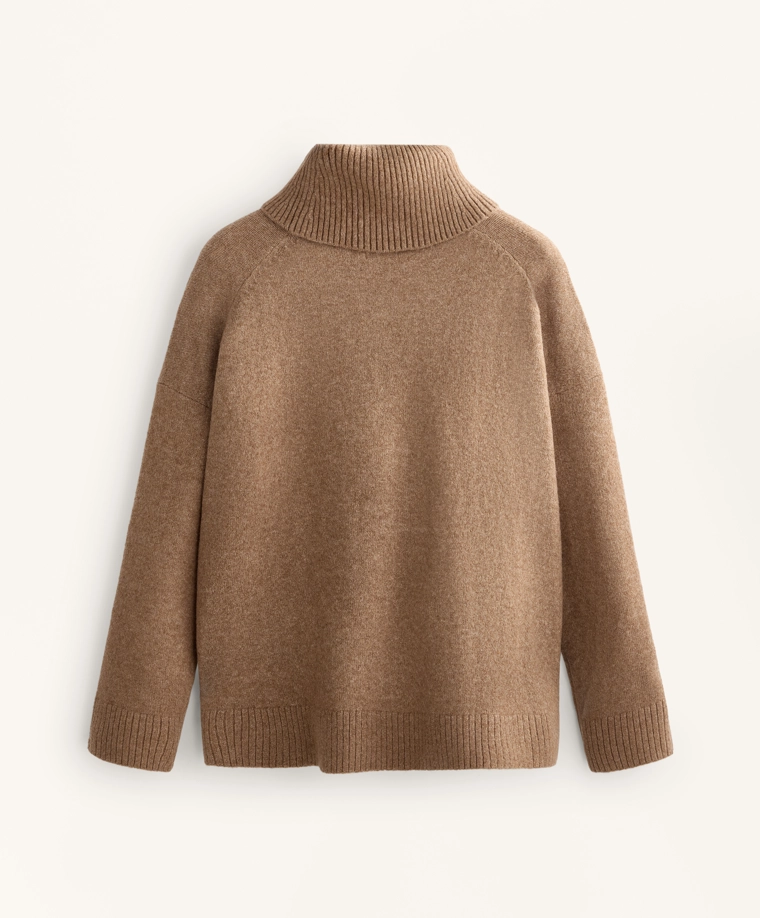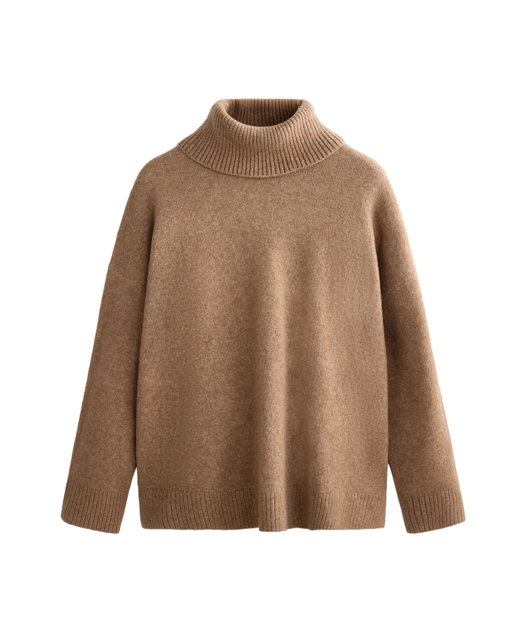 Oversize soft knit polo neck jumper TAN MELANGE|3655/885