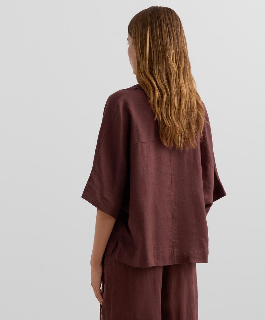 Oversized short sleeve 100% linen shirt DARK WINE RED | 3448/889/095
