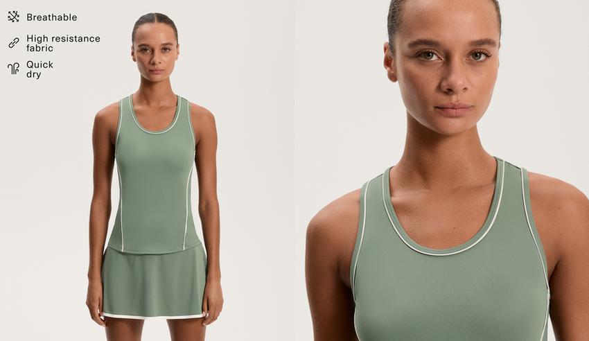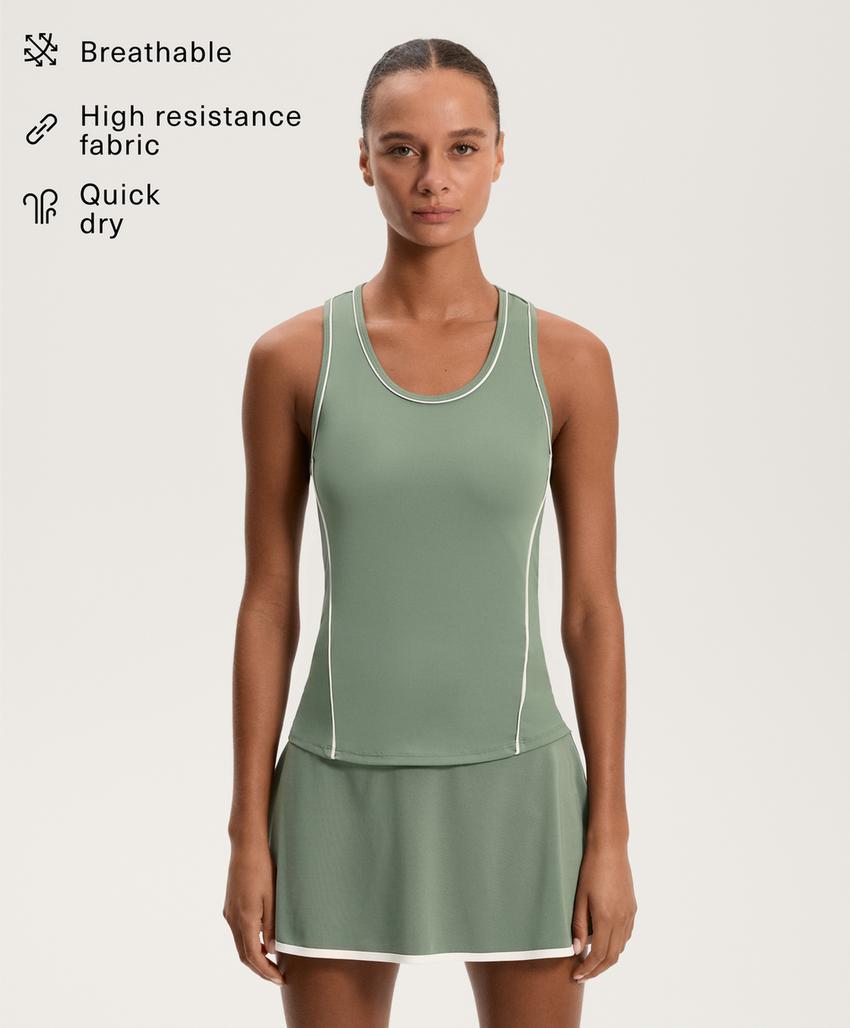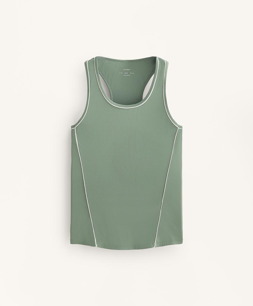 Piping detail sleeveless T-shirt WASHED GREEN | 0041/570/597