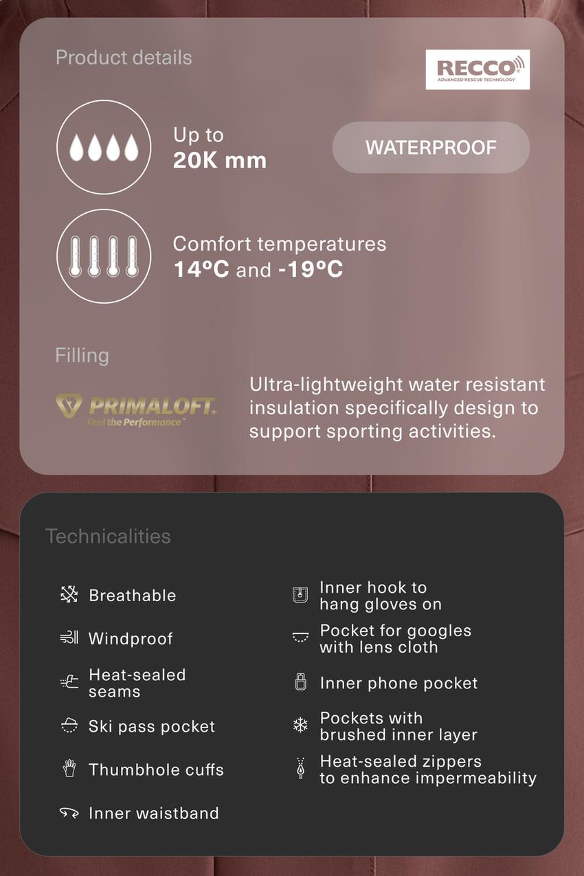 Primaloft® Feel the Performance TM SKI waterproof jacket with pockets