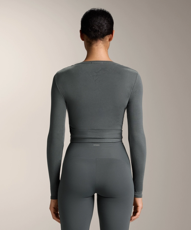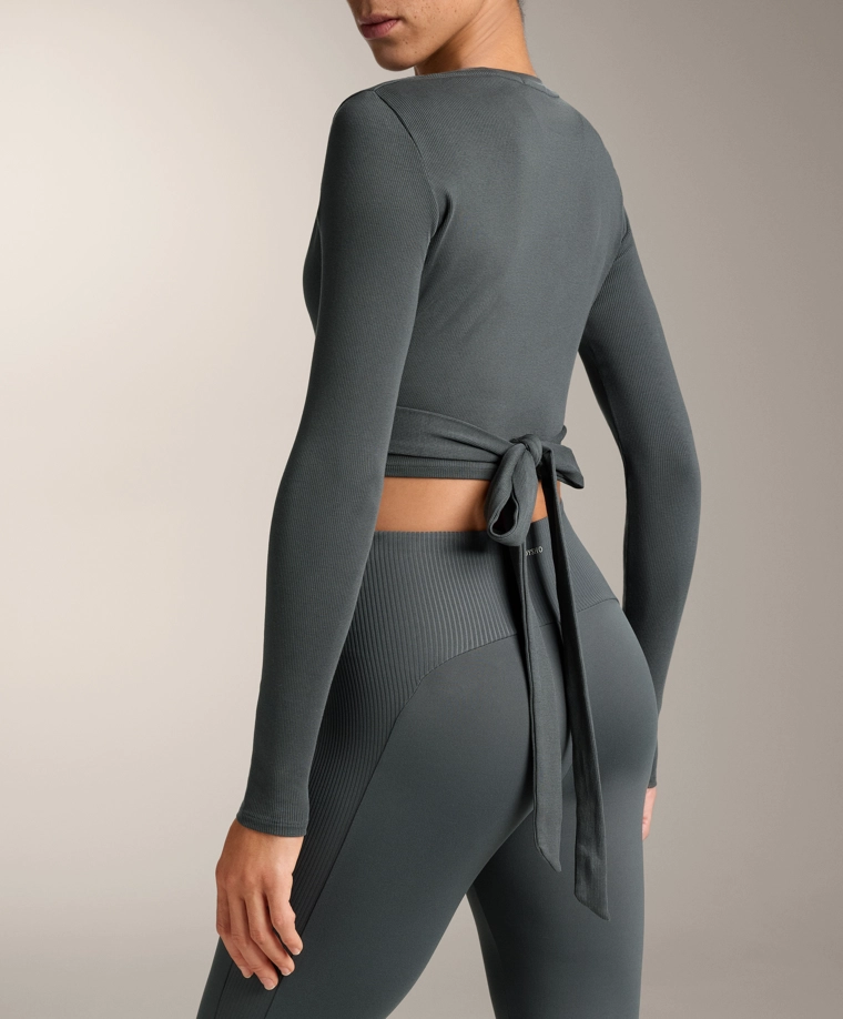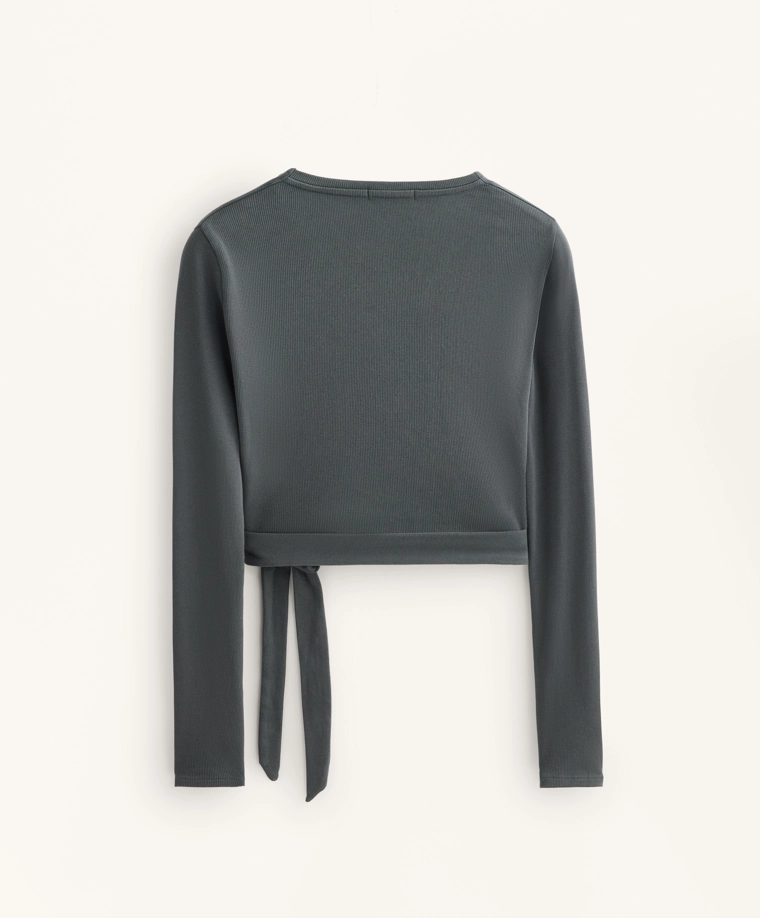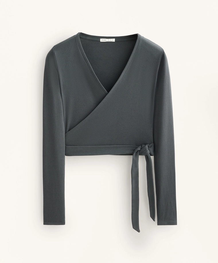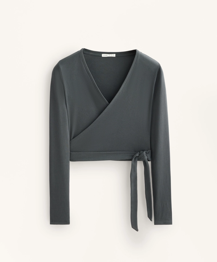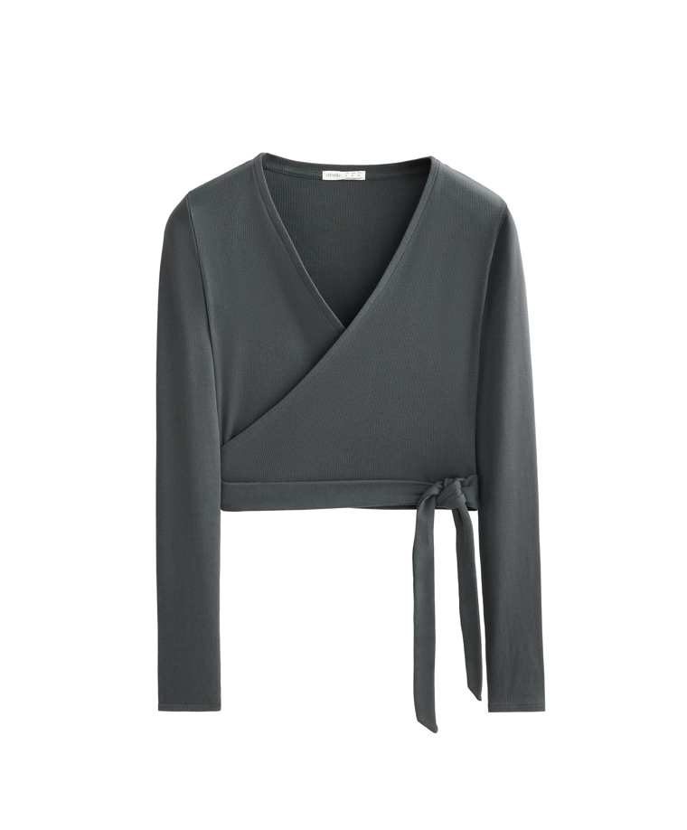 Rib cotton blend wrap top ANTHRACITE GREY|3122/738