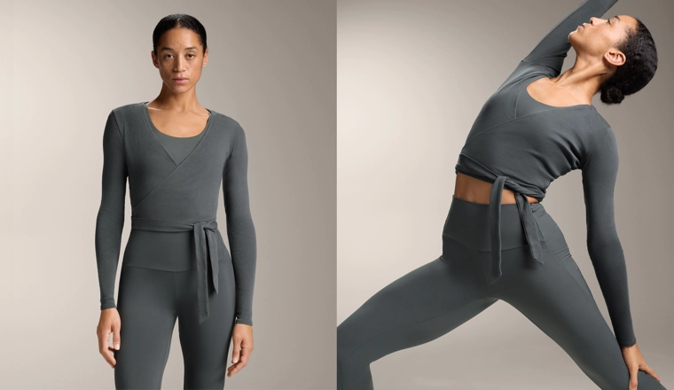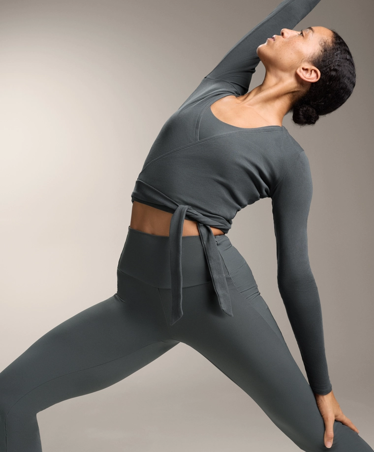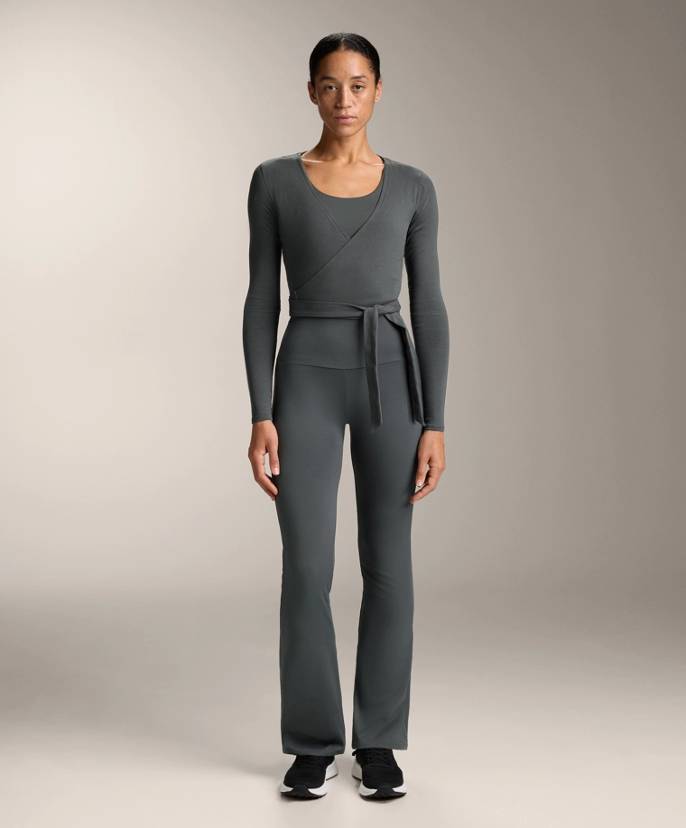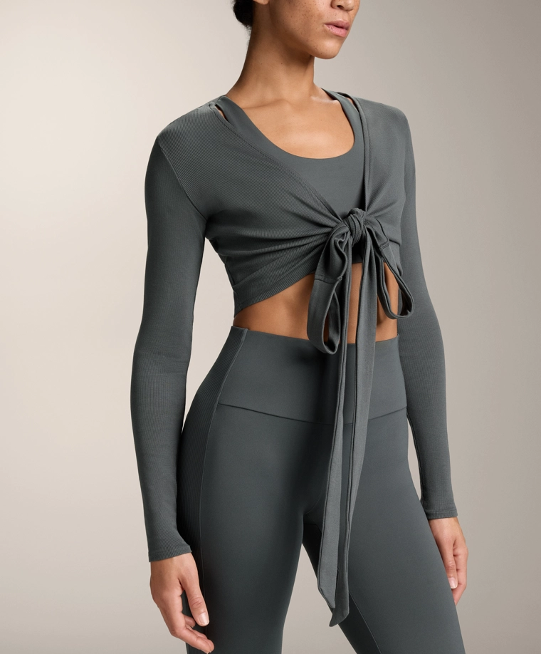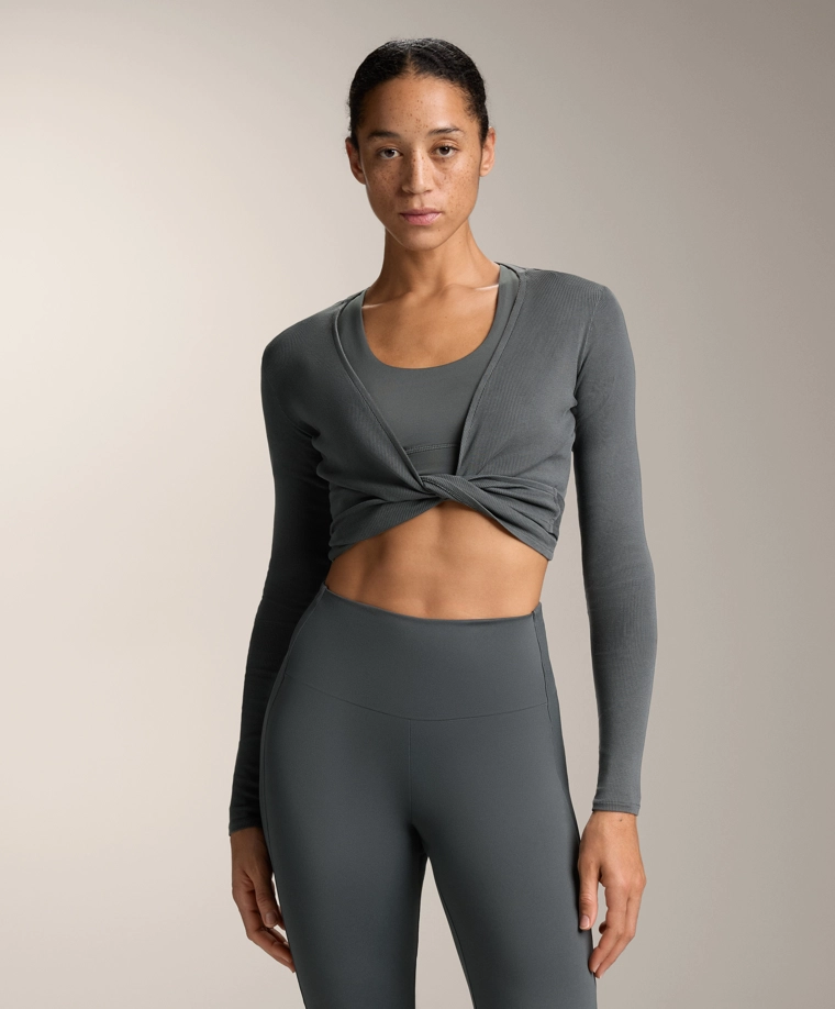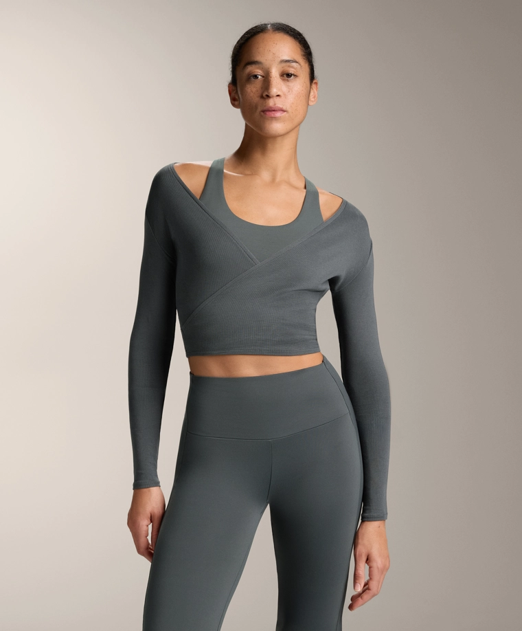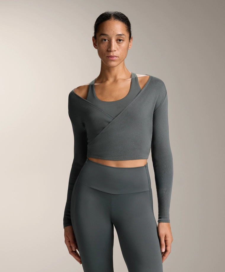 Rib cotton blend wrap top ANTHRACITE GREY|3122/738