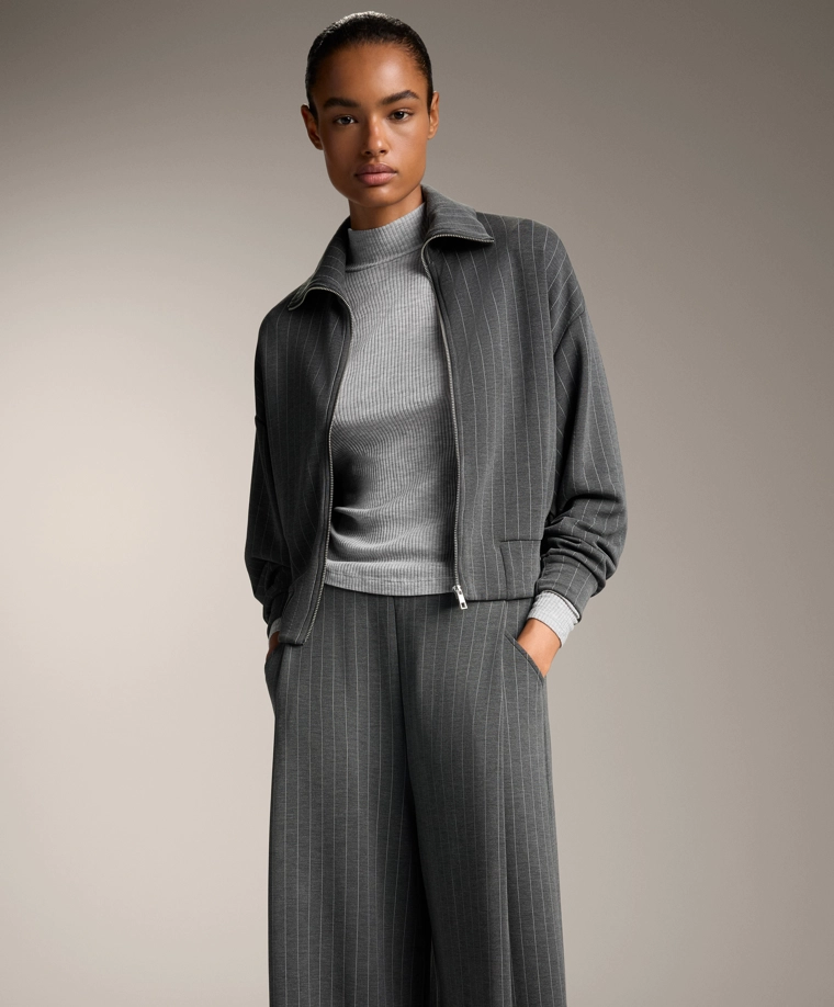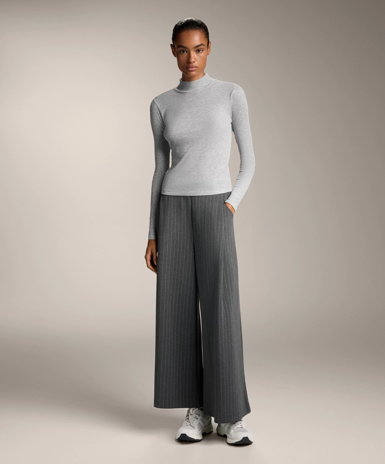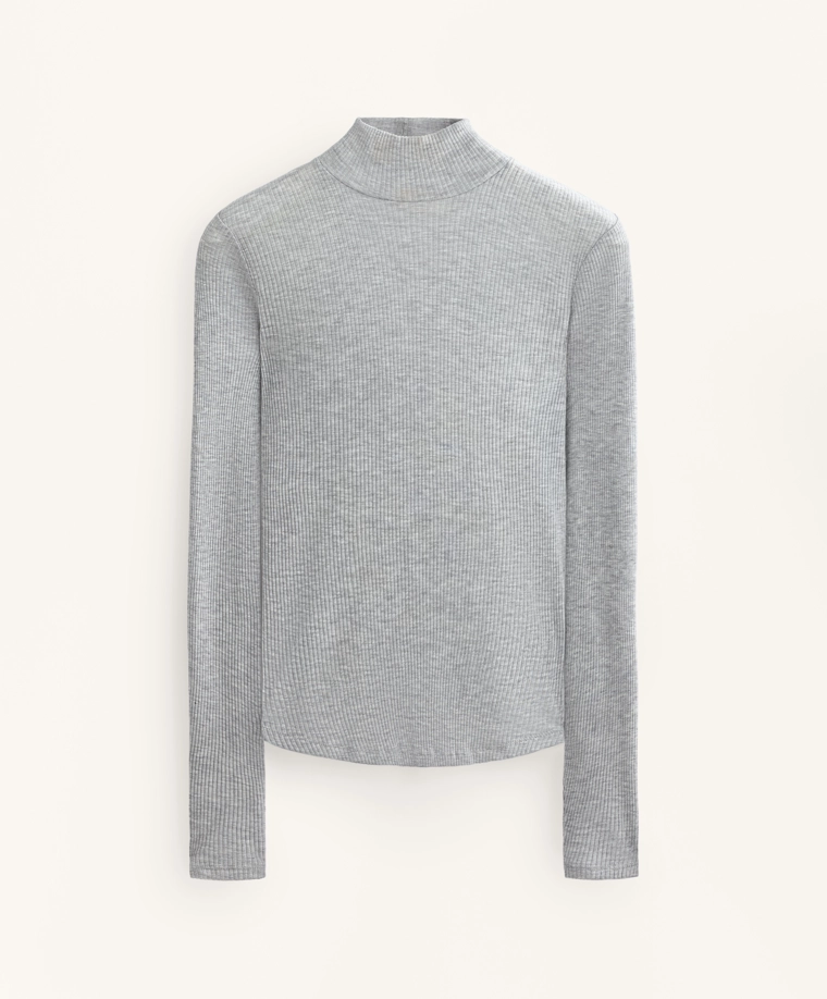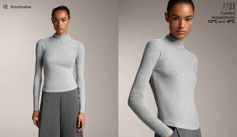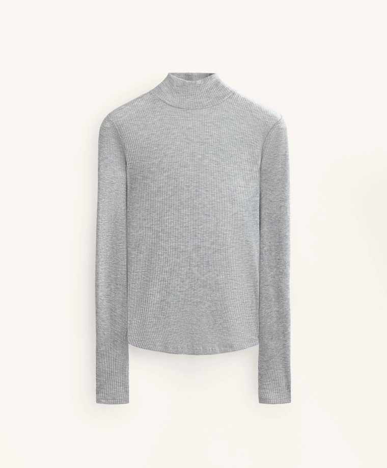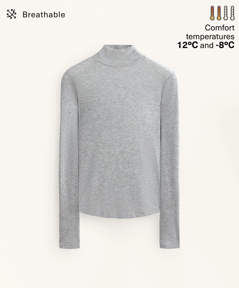 Rib high-neck base layer T-shirt with lyocell MID GREY|0248/789