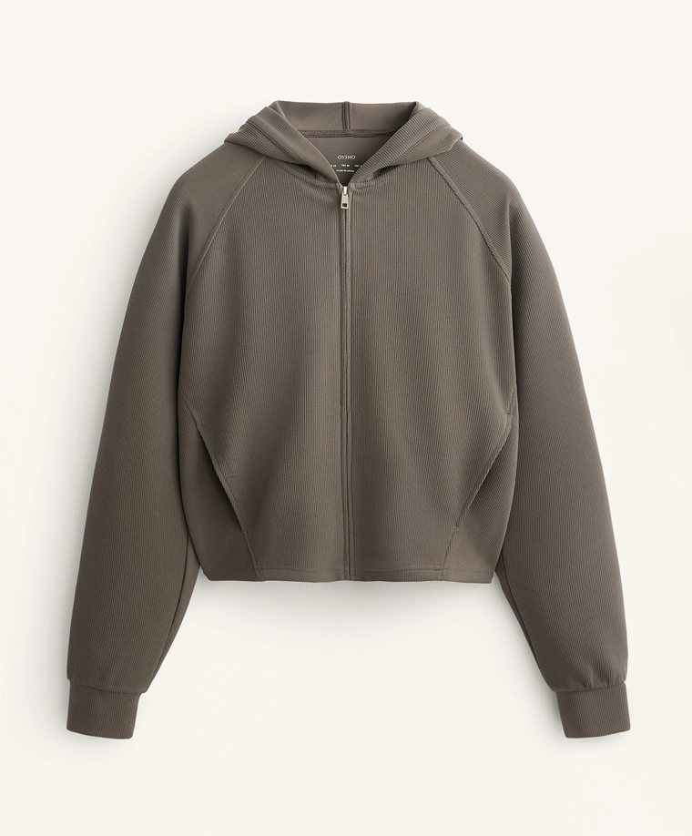 Ribbed hooded jacket with 29% modal CHARCOAL | 3030/737/822