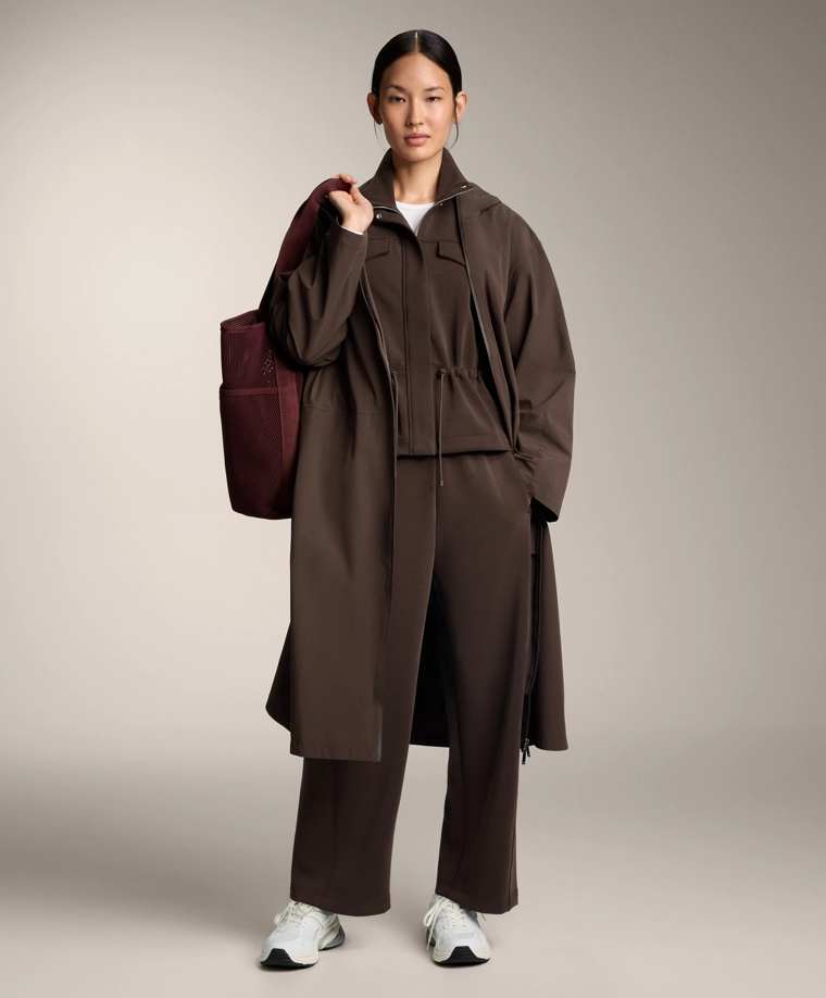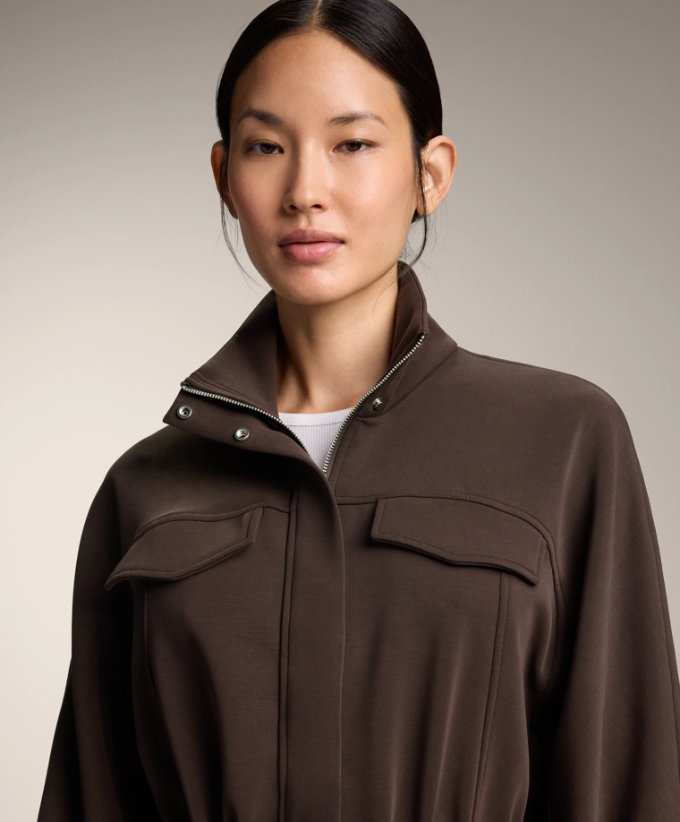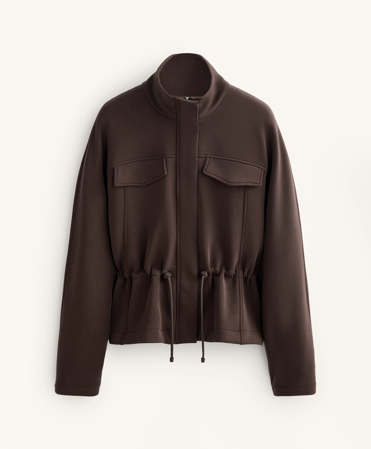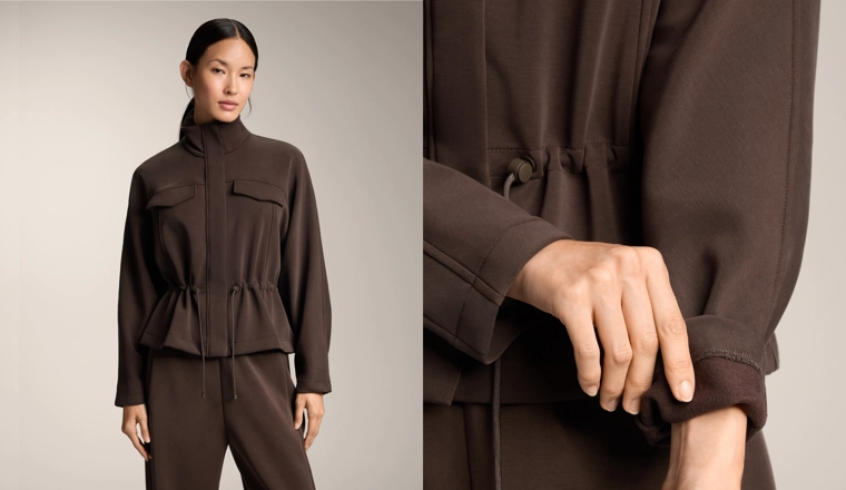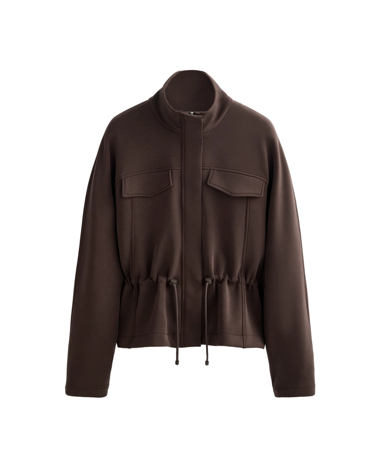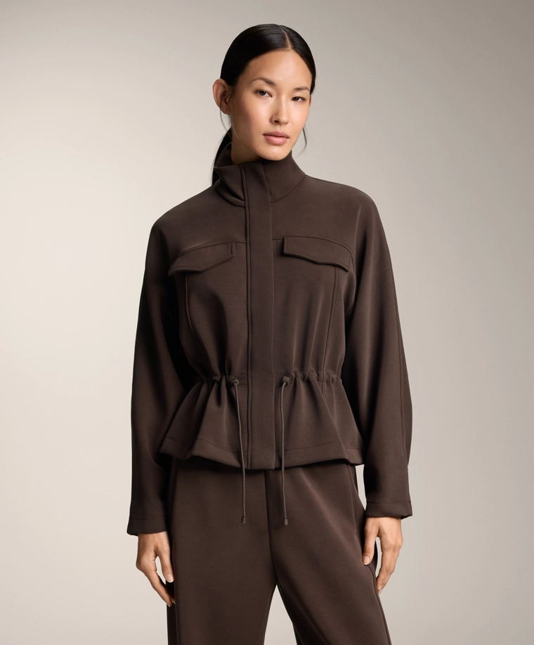 Short adjustable waist jacket with brushed modal DARK REDDISH‑BROWN|3918/838