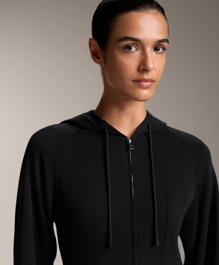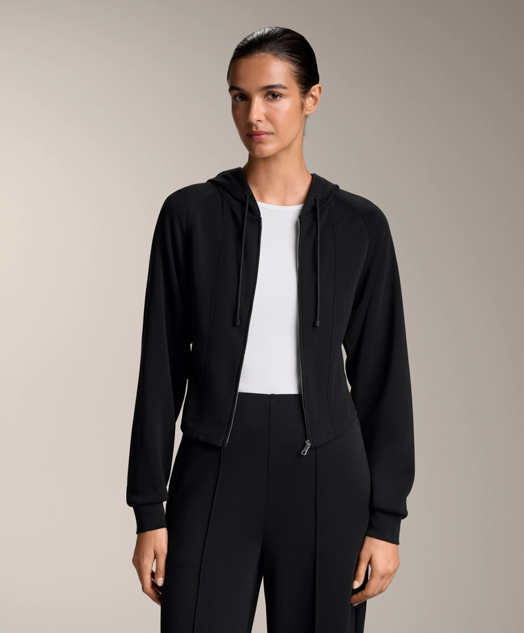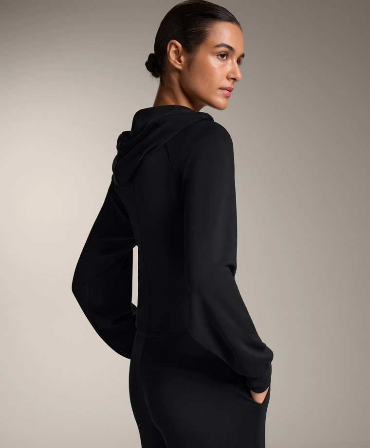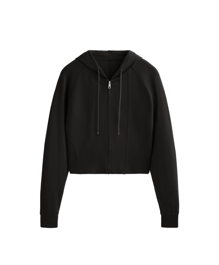 Soft touch modal fitted crop hooded jacket BLACK|3801/791