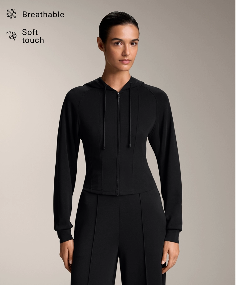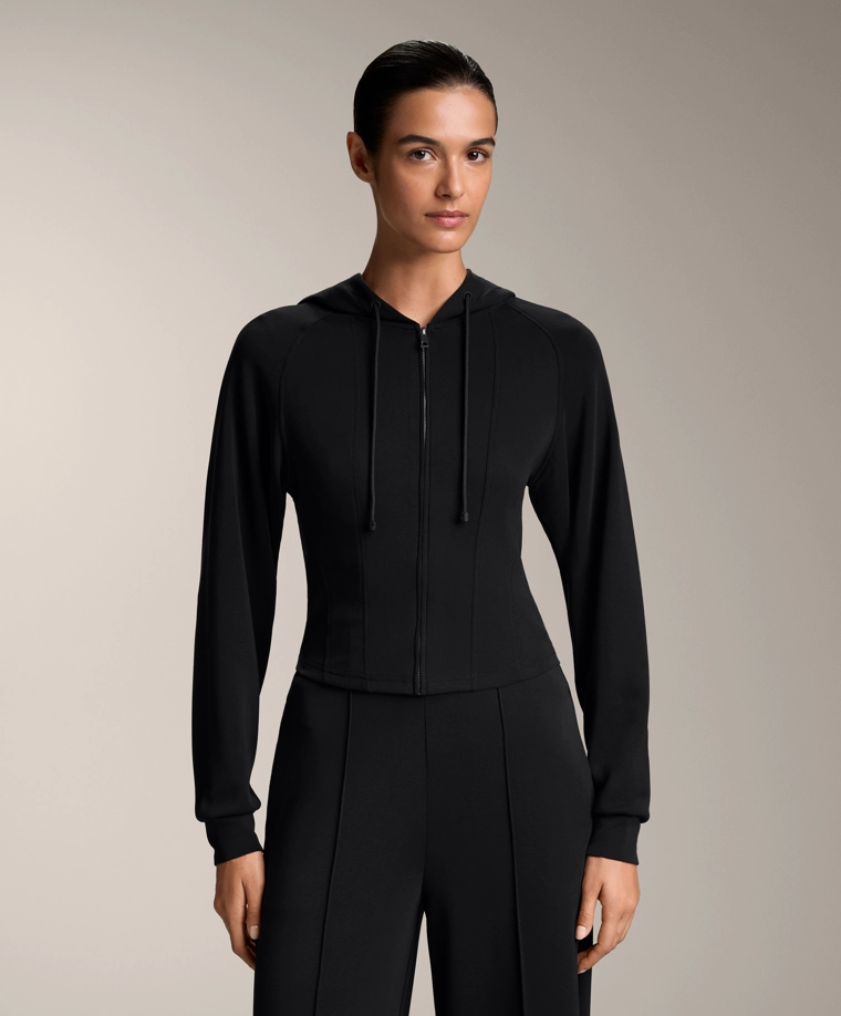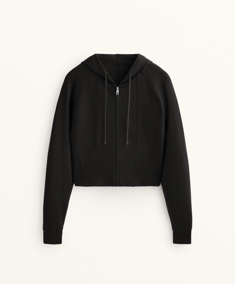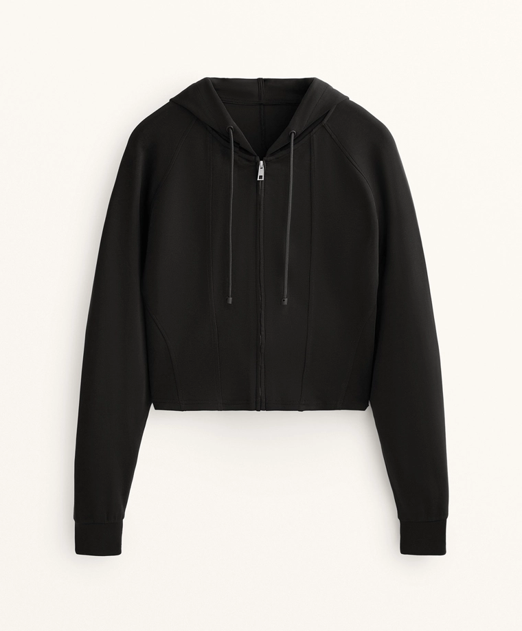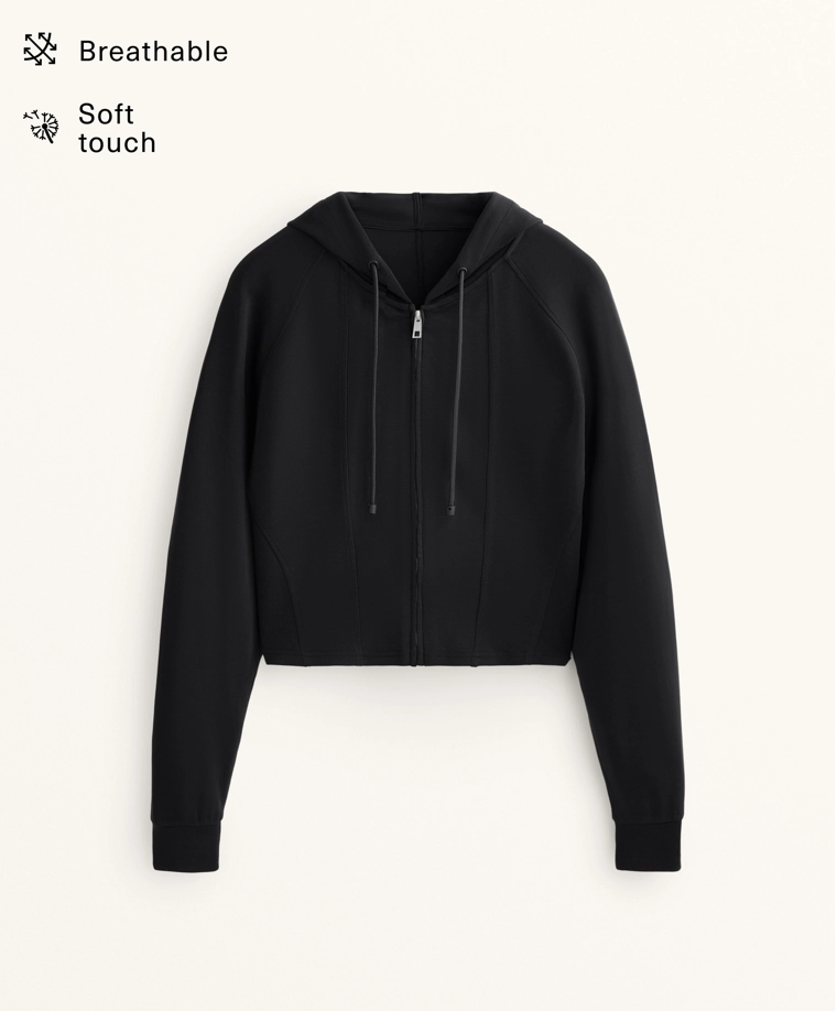 Soft touch modal fitted crop hooded jacket BLACK|3801/791
