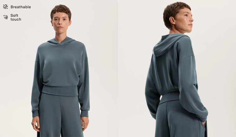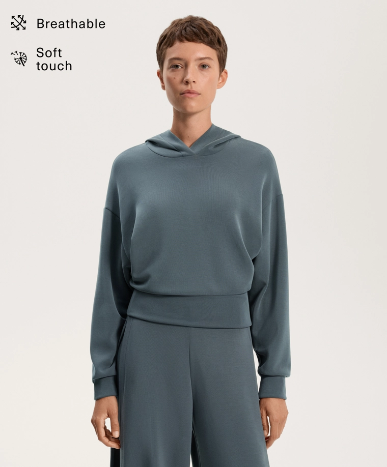 Soft-touch modal crop hoodie with adjustable waist ANTHRACITE BLUE|4785/791