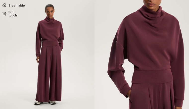 Soft-touch modal roll-neck sweatshirt DARK MAROON|3810/780