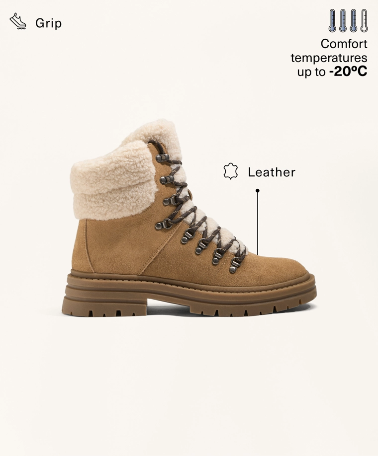 Split-leather lace-up ankle boots