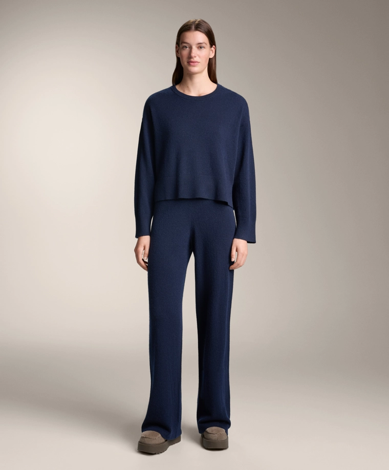 Straight leg 100% cashmere trousers DARK NAVY | 3360/631/422