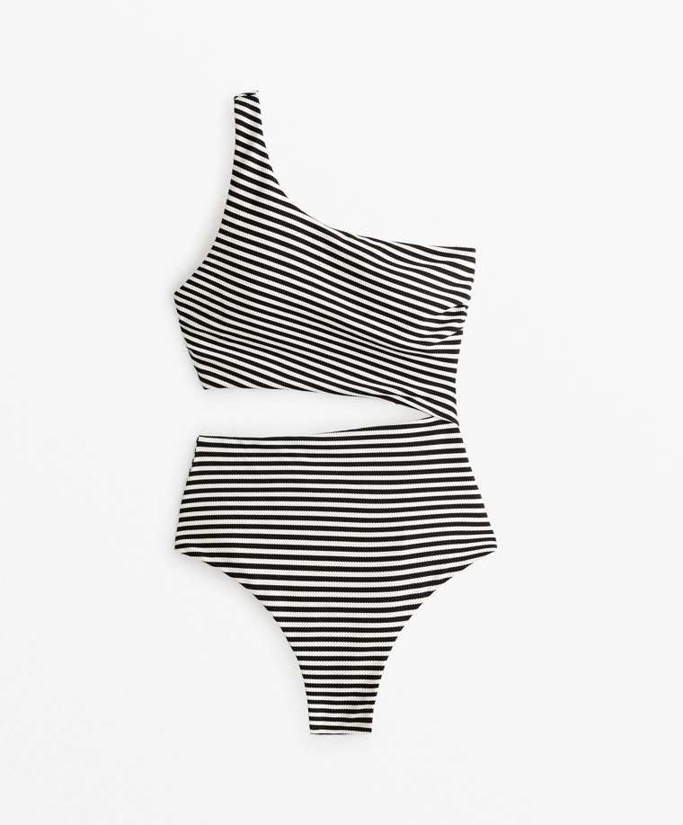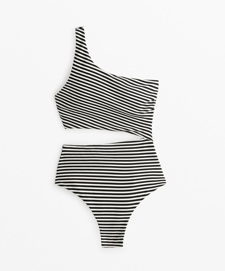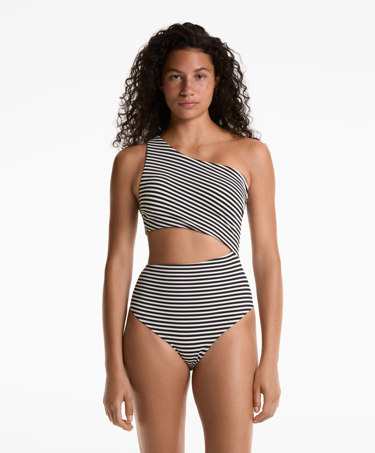 Striped asymmetric trikini BLACK|0744/729