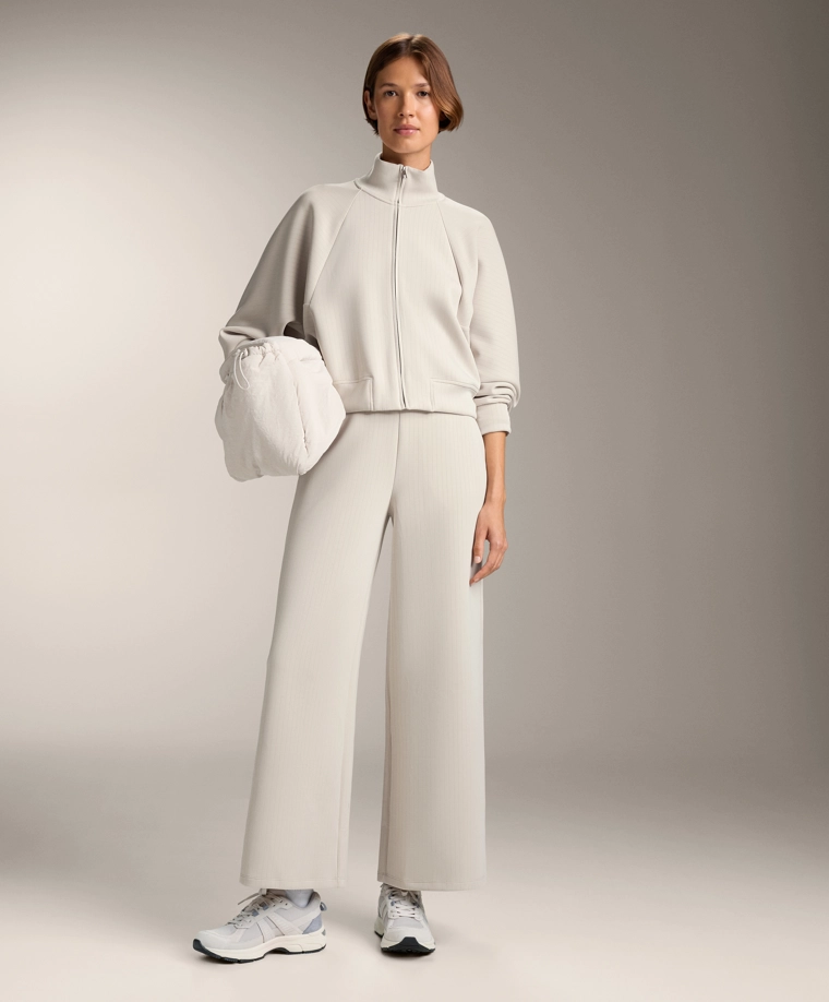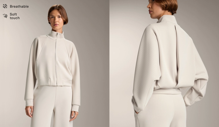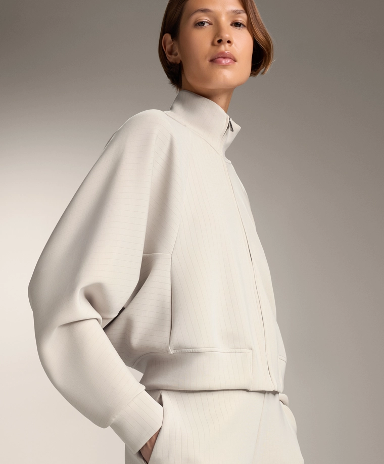 Striped high-neck jacket with soft-touch modal PALE MINK | 3868/739/771