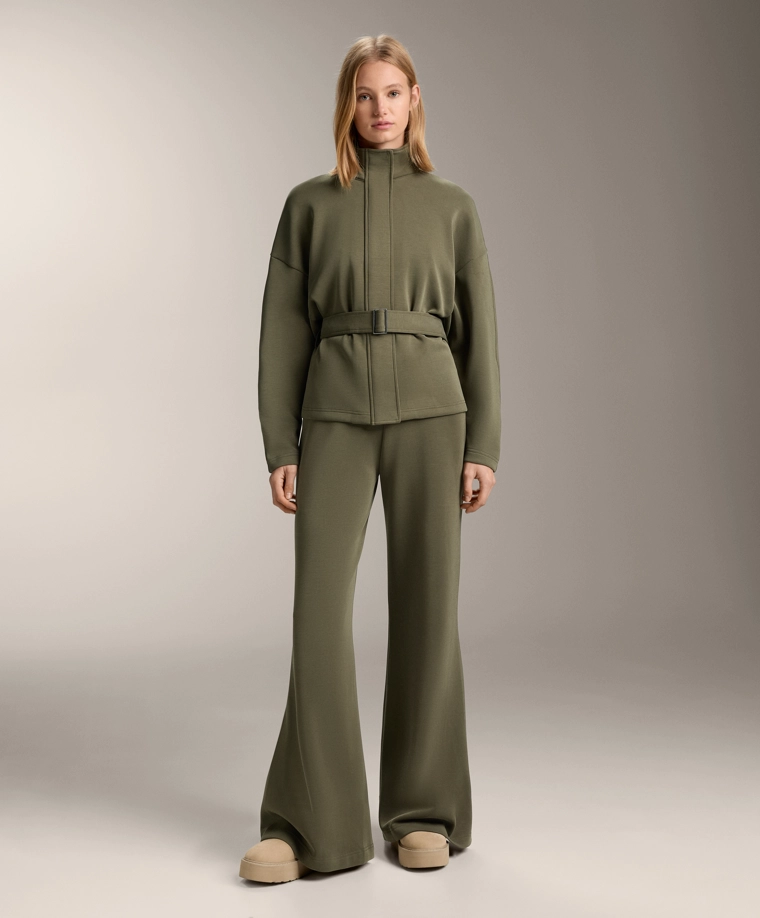 Super high-rise flare trousers with brushed modal KHAKI|4057/838
