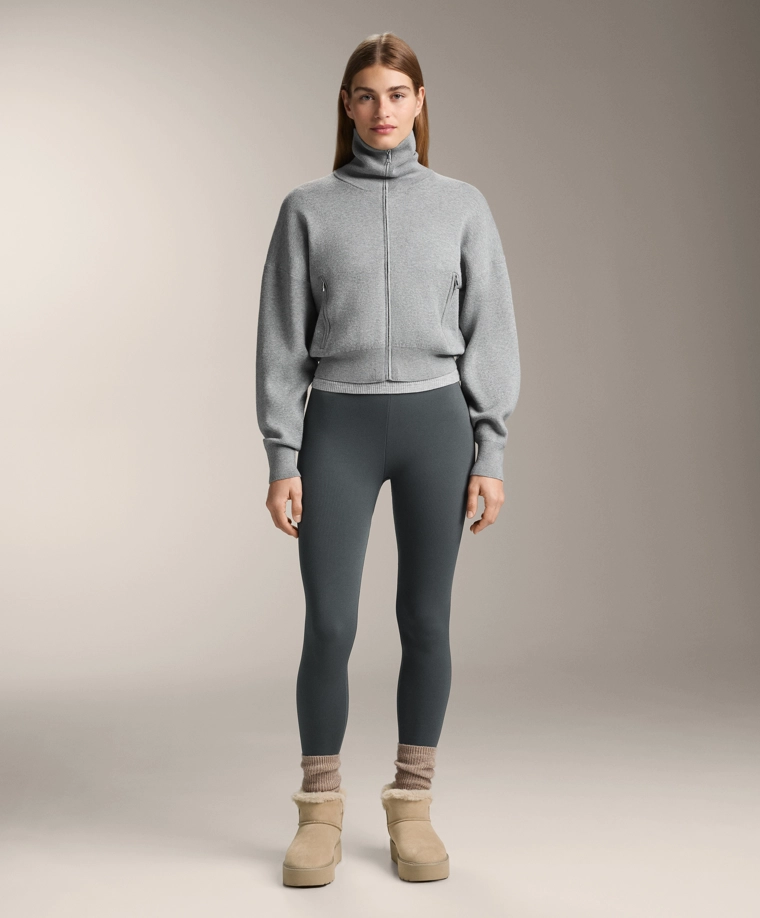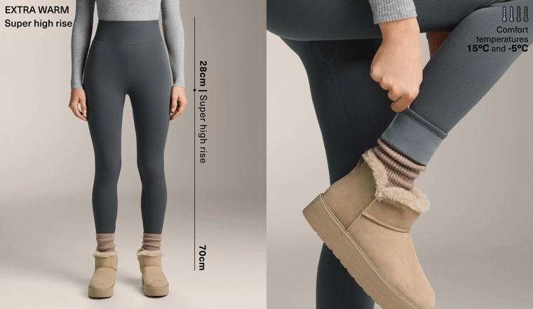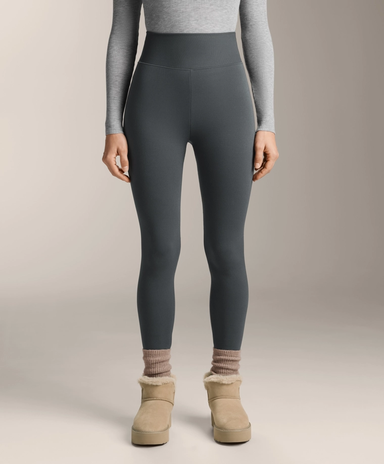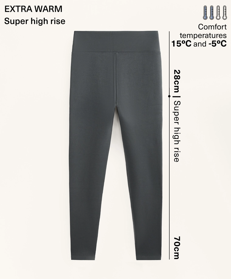 Super-high-rise seamless extra-warm rib ankle-length leggings 70 cm ANTHRACITE GREY|3753/398
