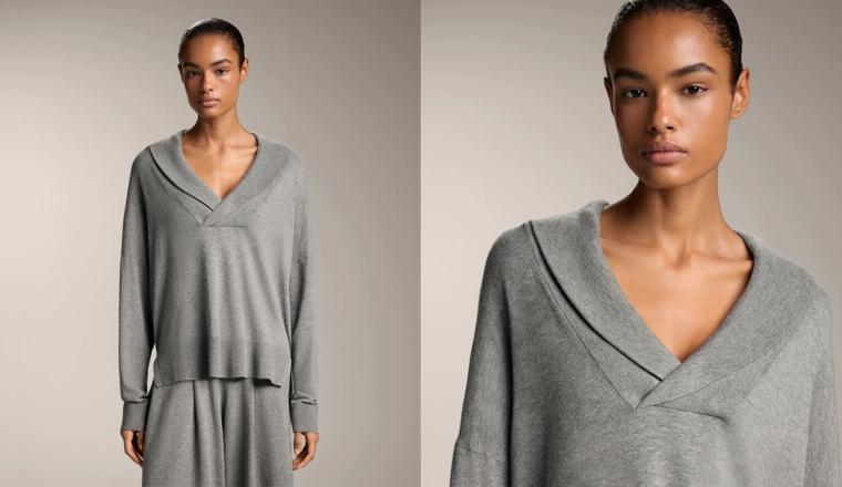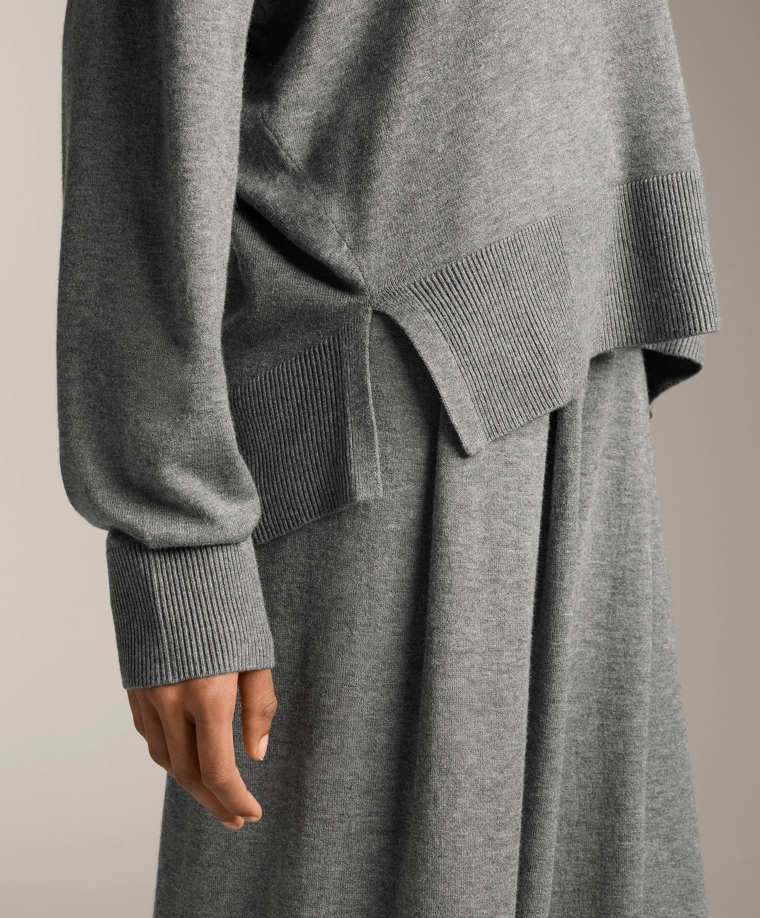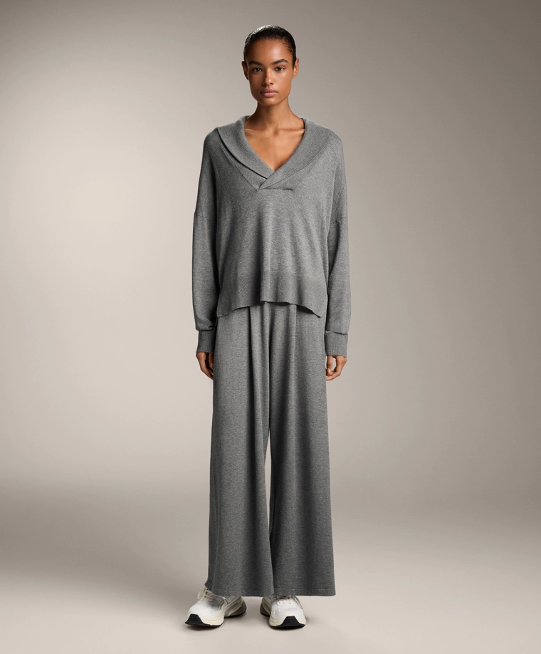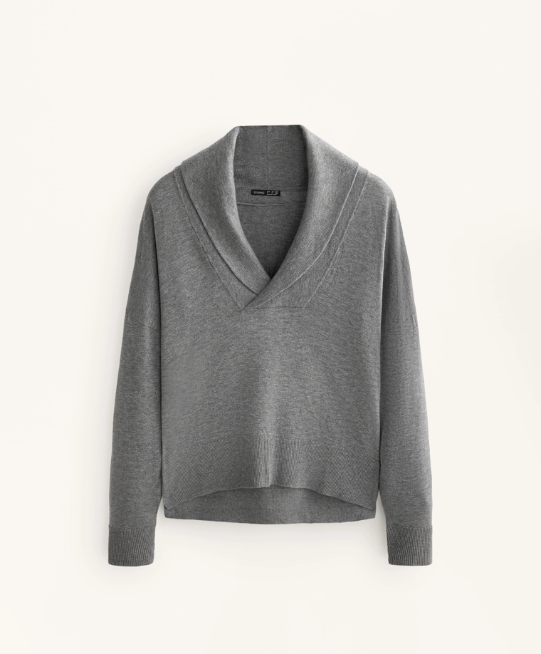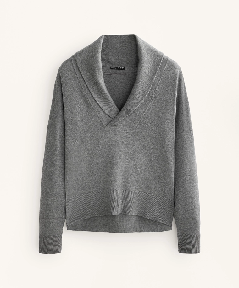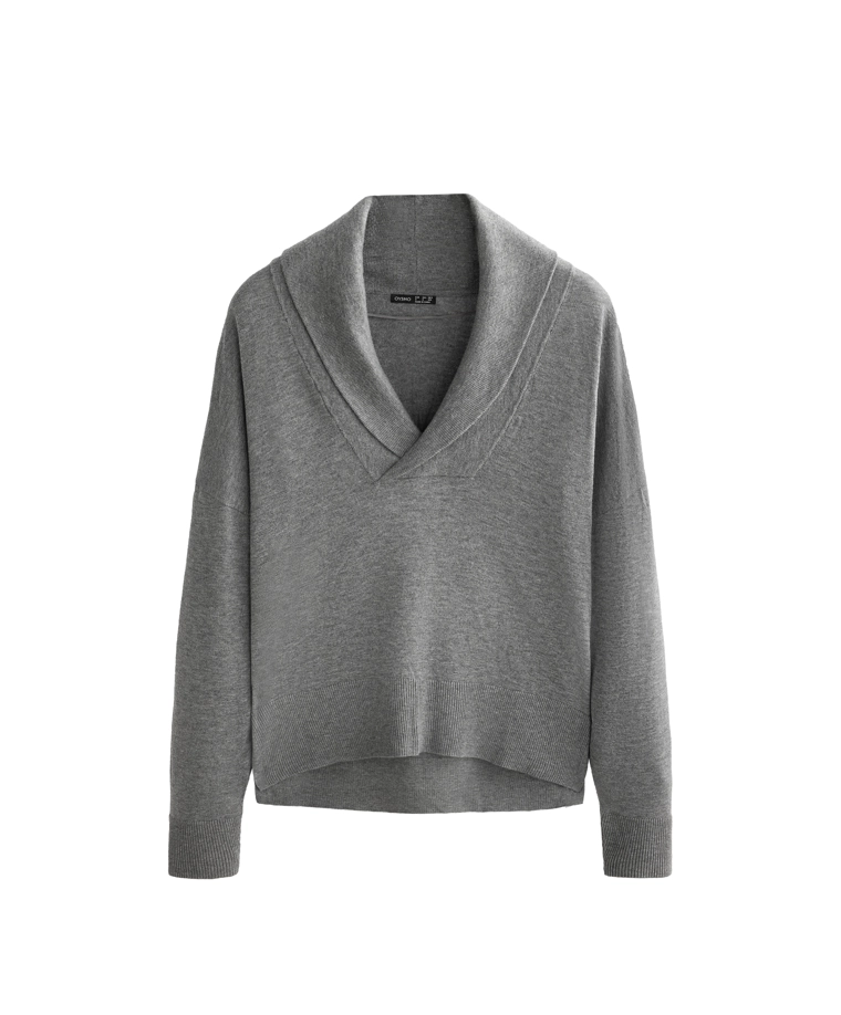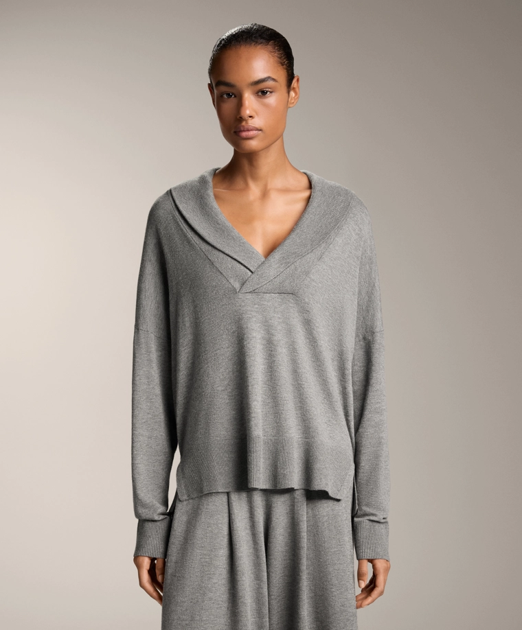 V-neck jumper with lapel GREY MELANGE|3662/770