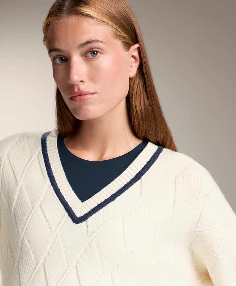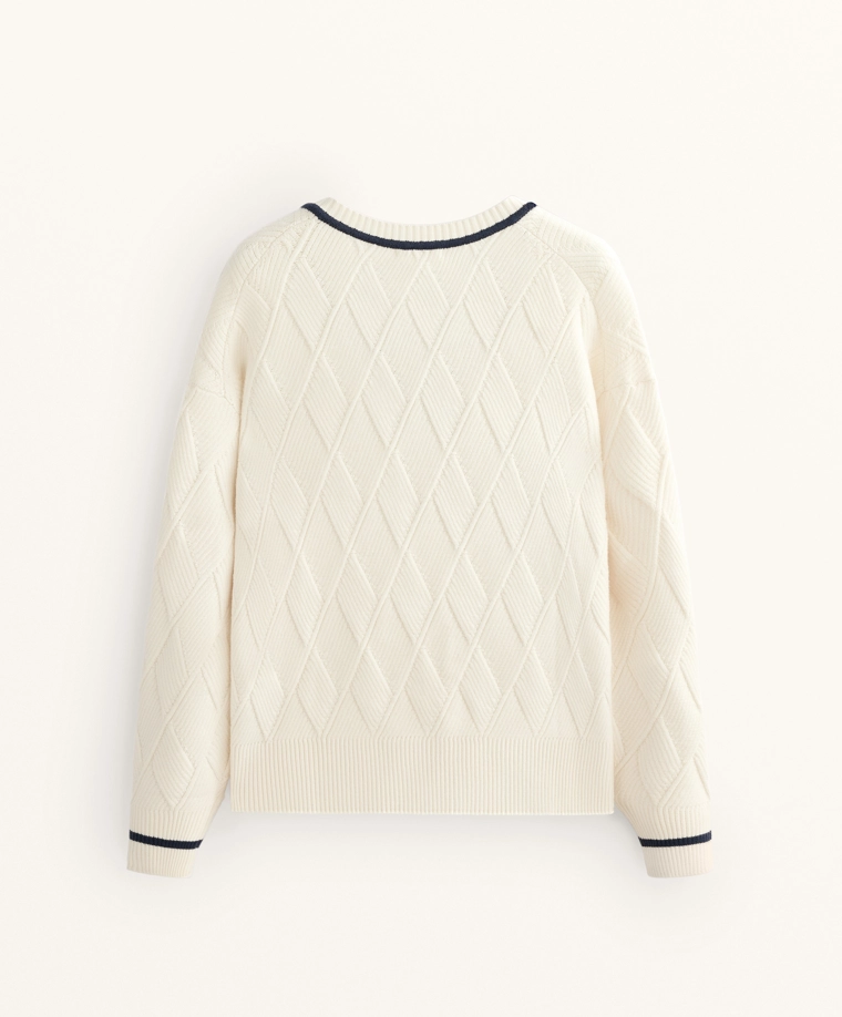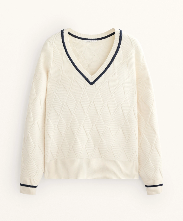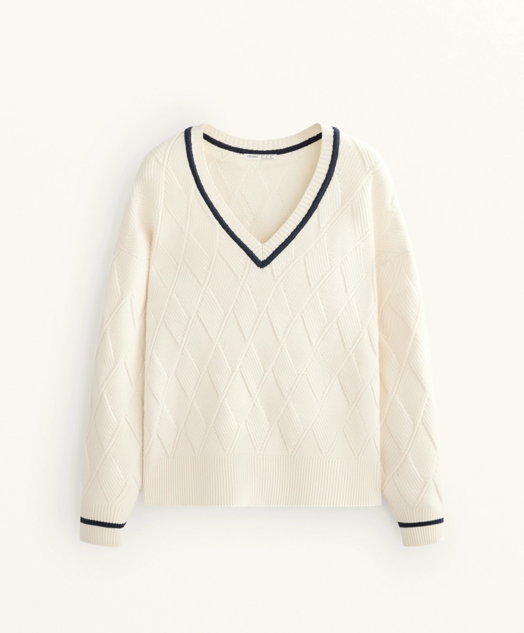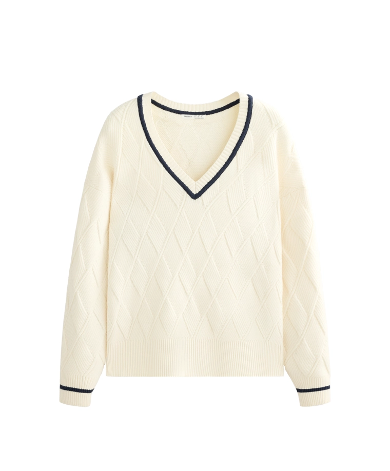 V-neck knit jumper with diamond effect ECRU|3845/798