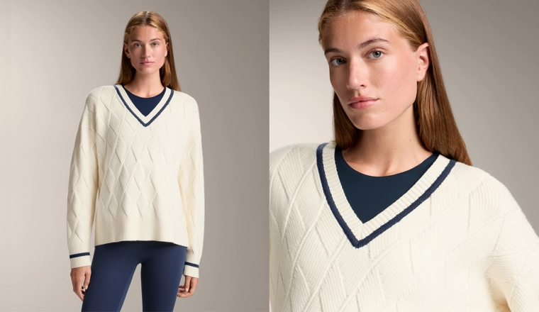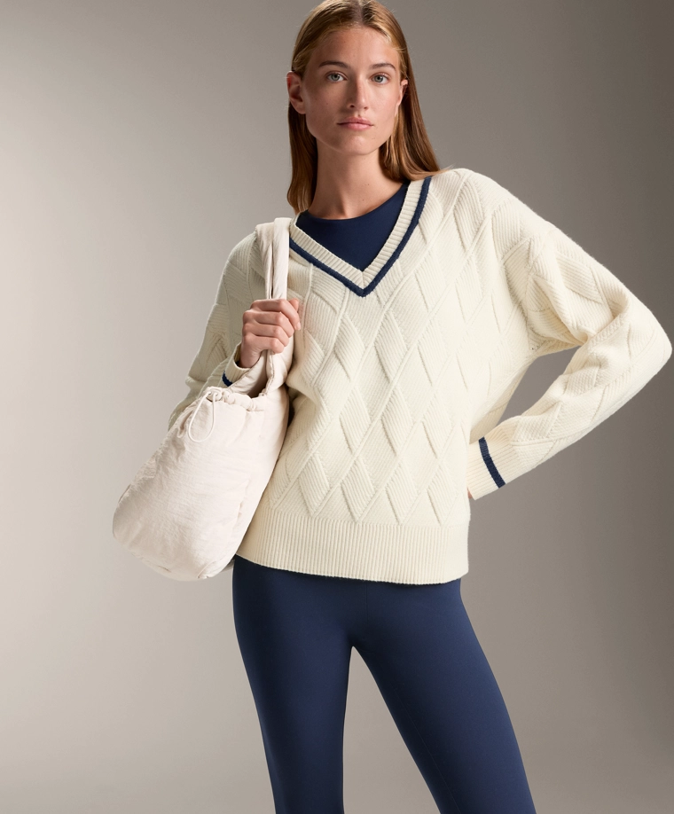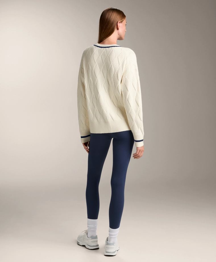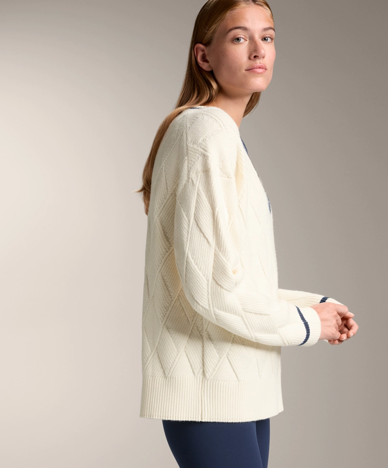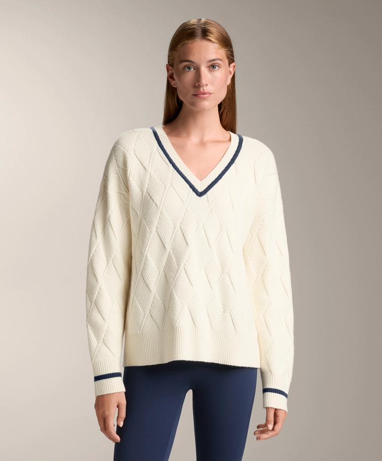 V-neck knit jumper with diamond effect ECRU|3845/798