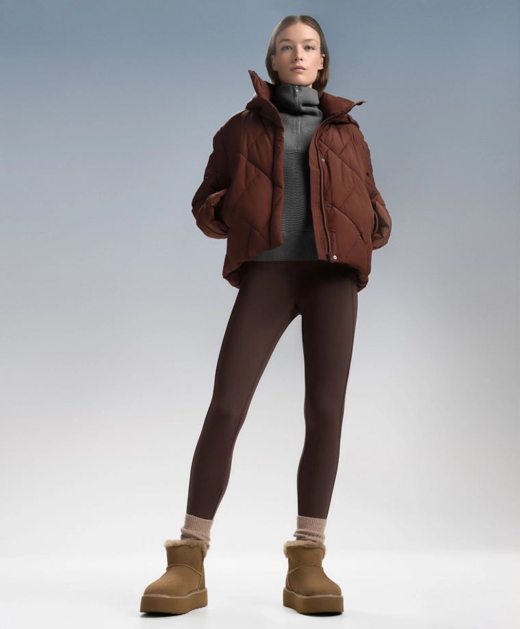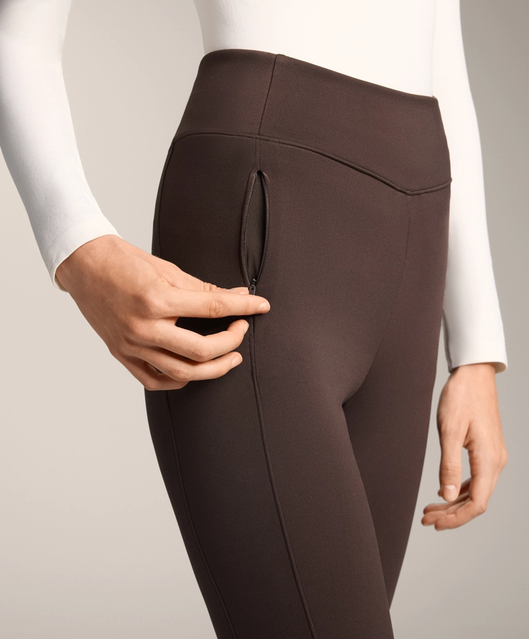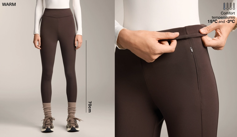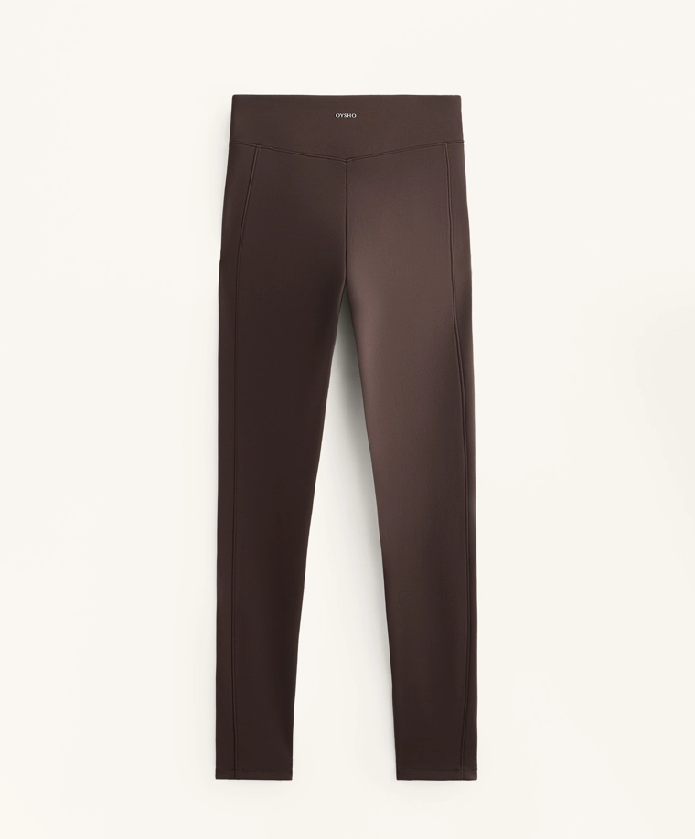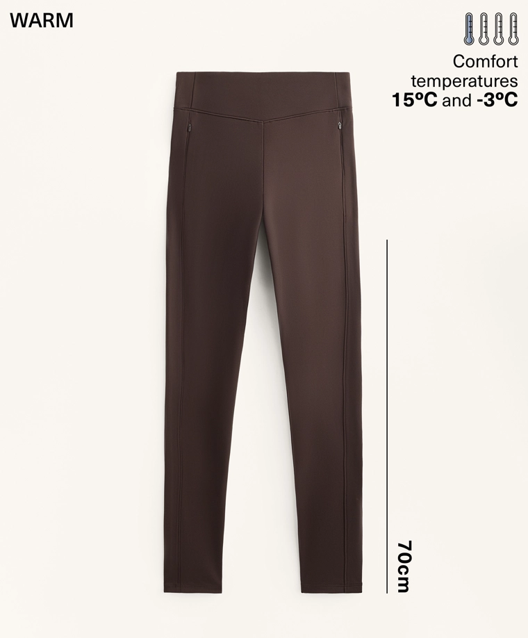 Warm high-rise ankle-length leggings with pockets 70 cm DARK REDDISH‑BROWN|3465/230
