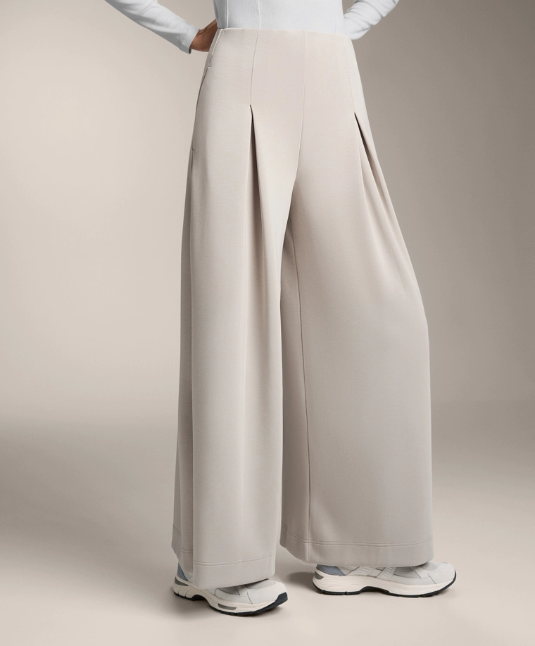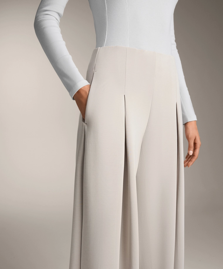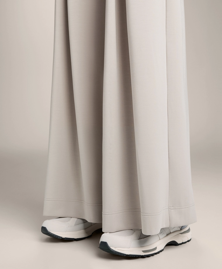 Wide-leg pleated trousers with soft-touch modal CHARCOAL|3343/791