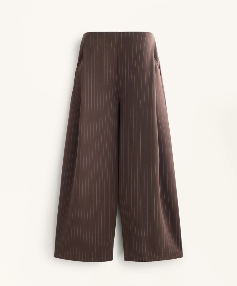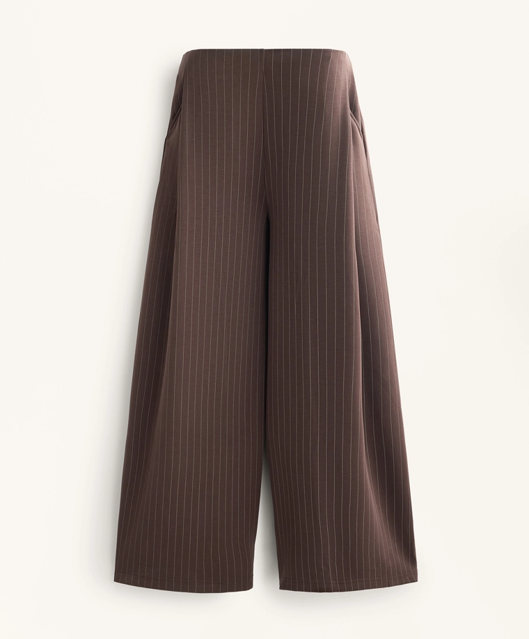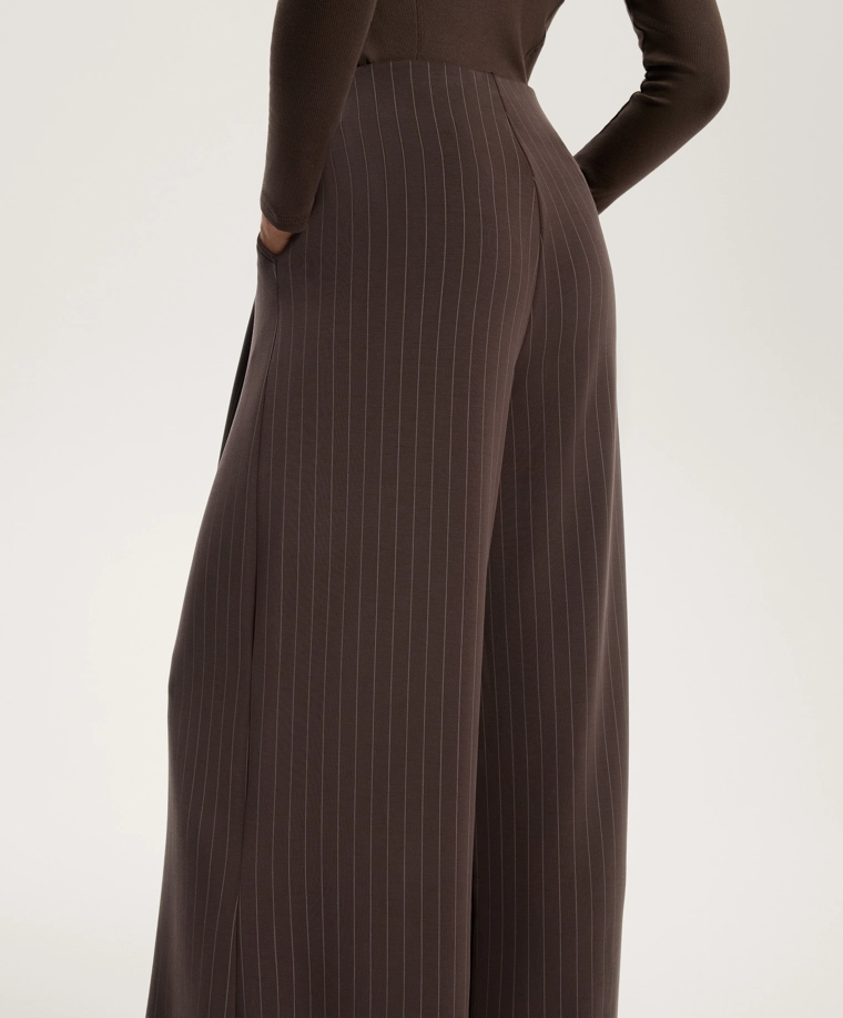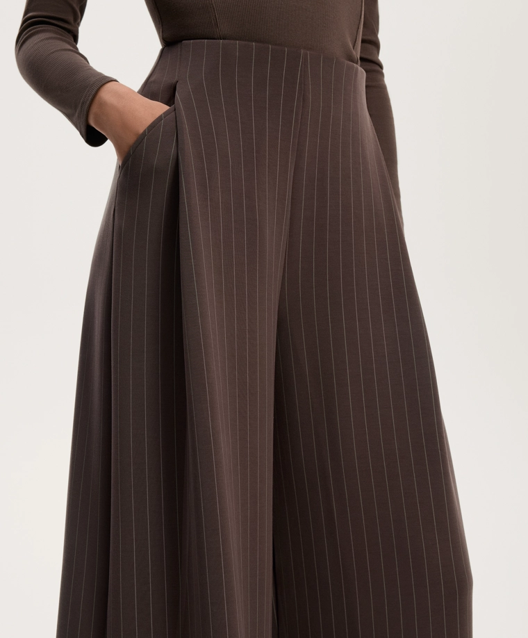 Wide-leg striped trousers with soft-touch modal DARK REDDISH‑BROWN|4040/791