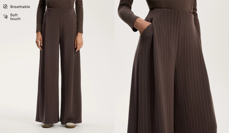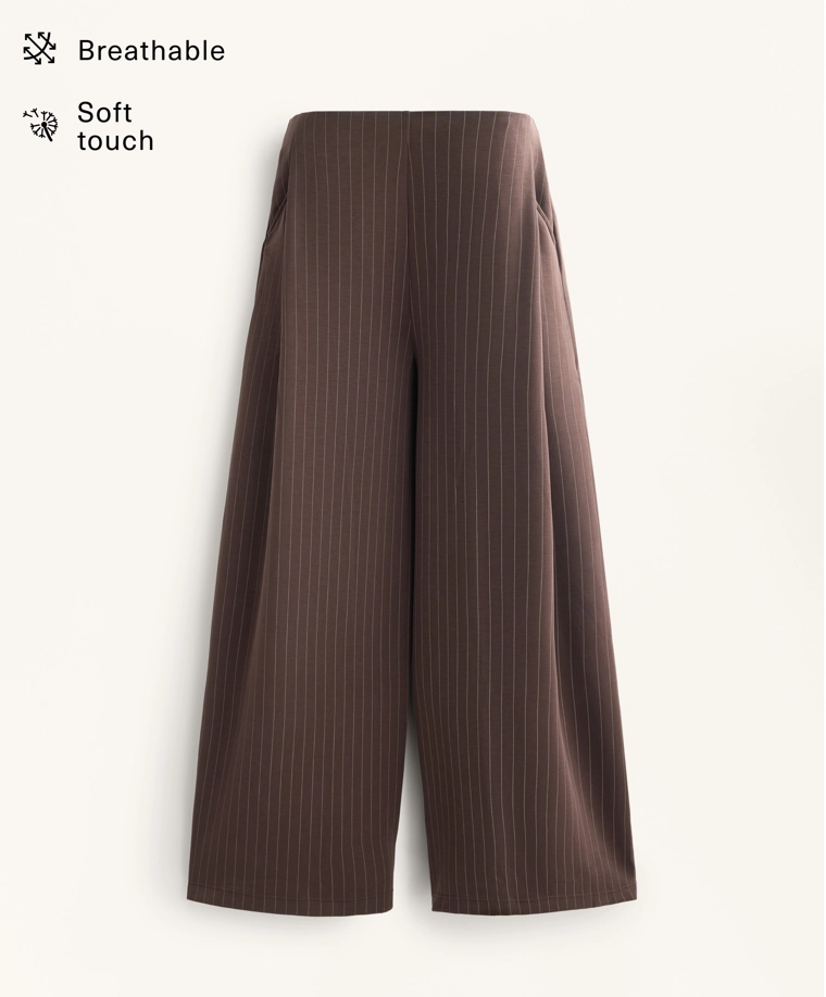 Wide-leg striped trousers with soft-touch modal