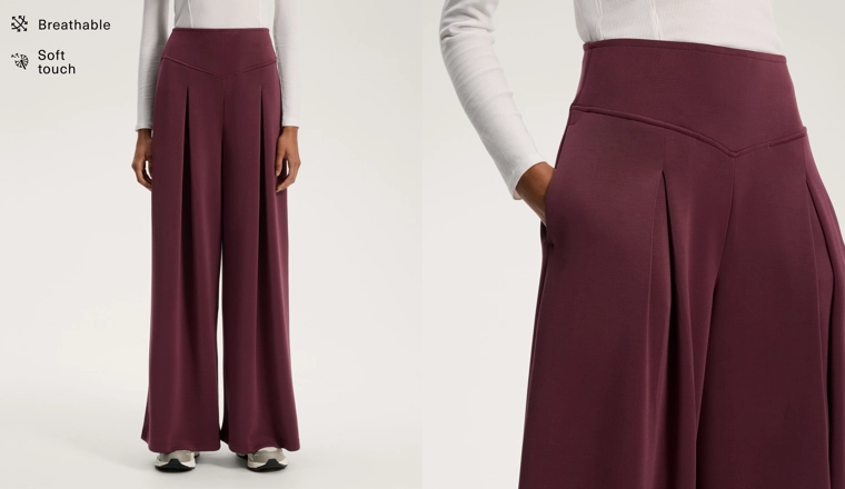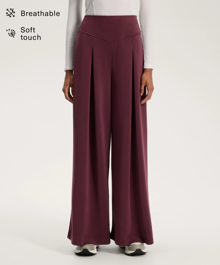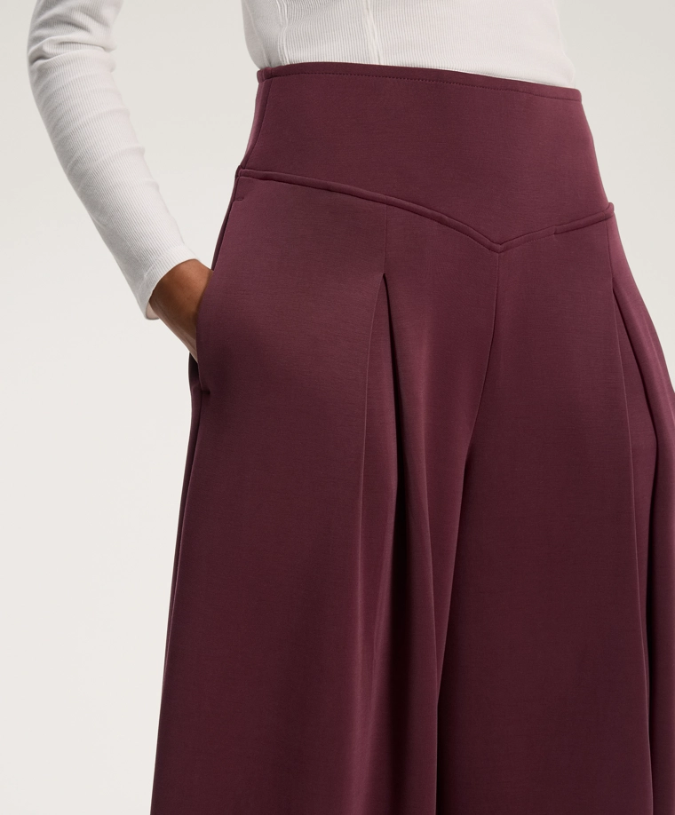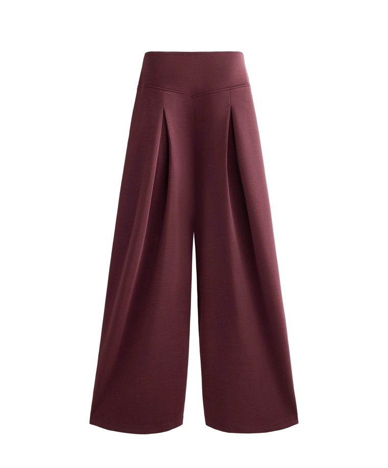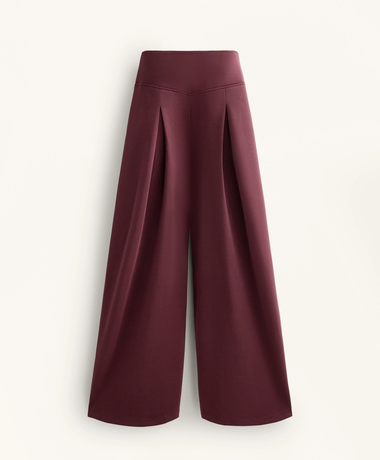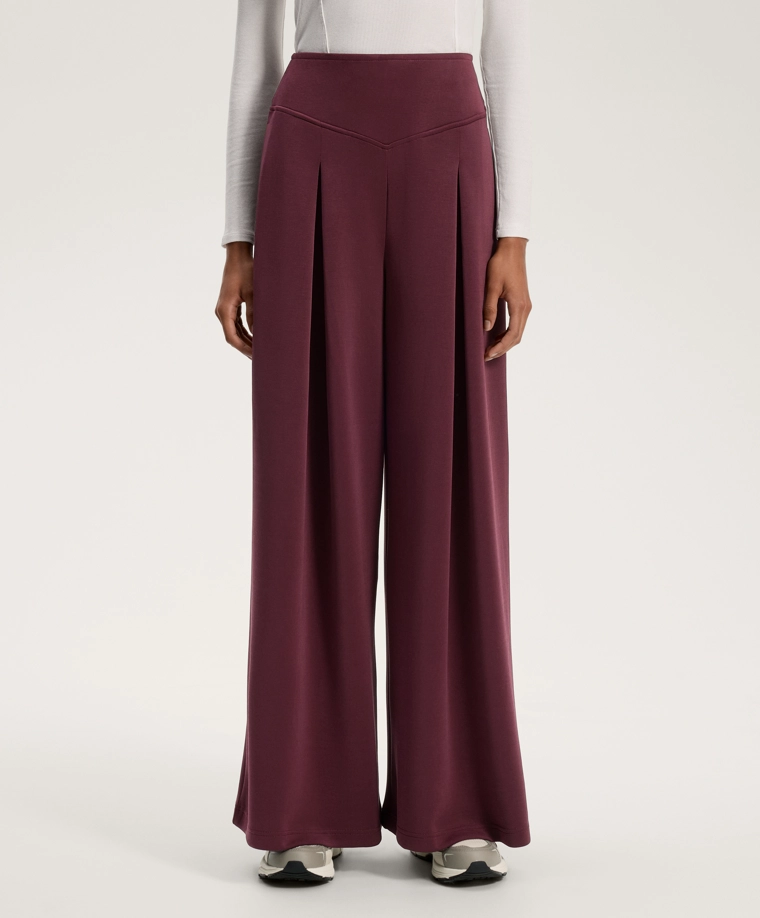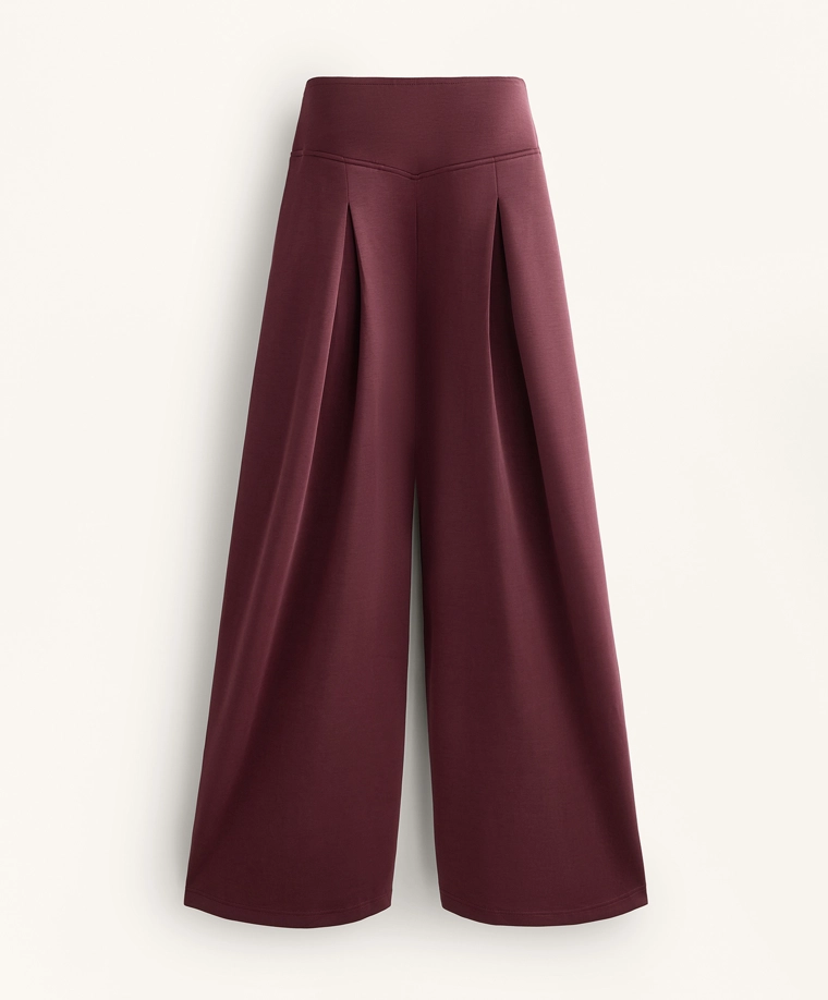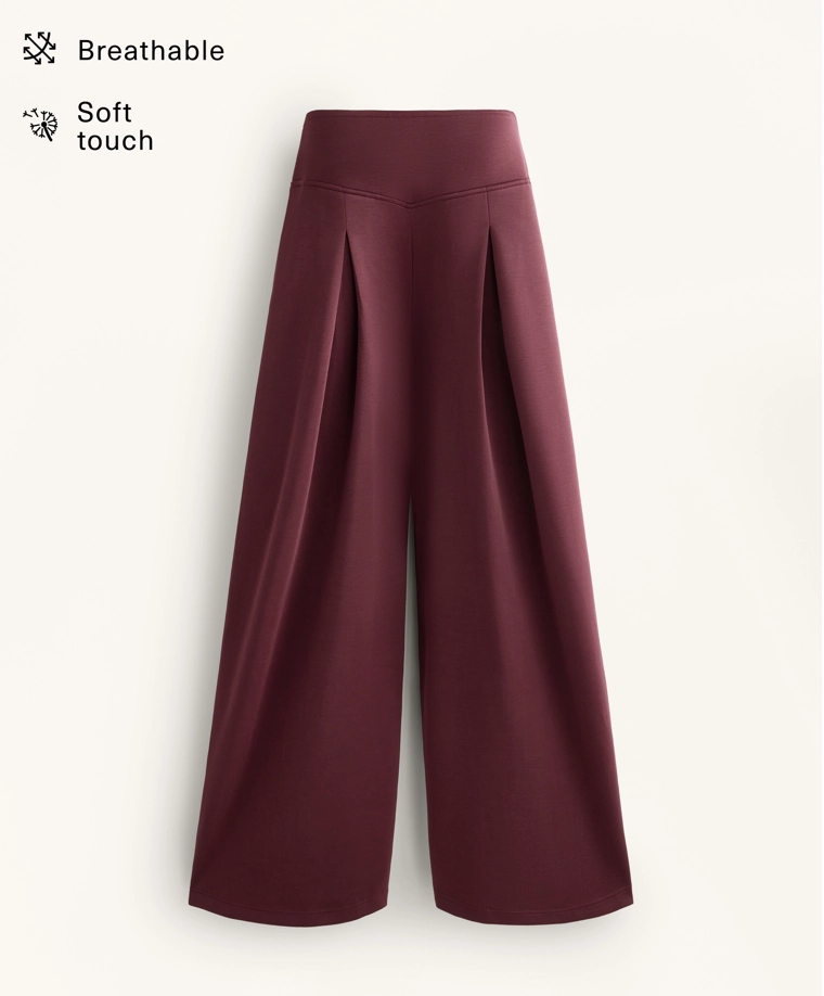 Wide-leg trousers with front pleat and soft-touch modal DARK MAROON|4027/780