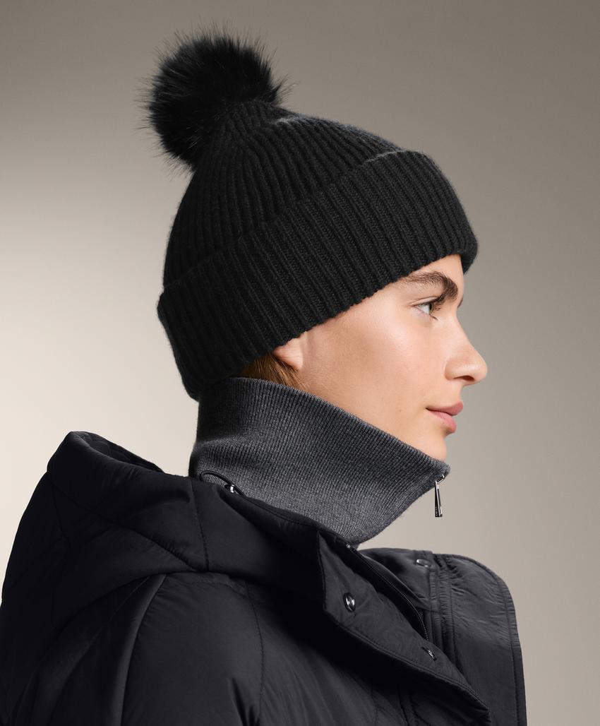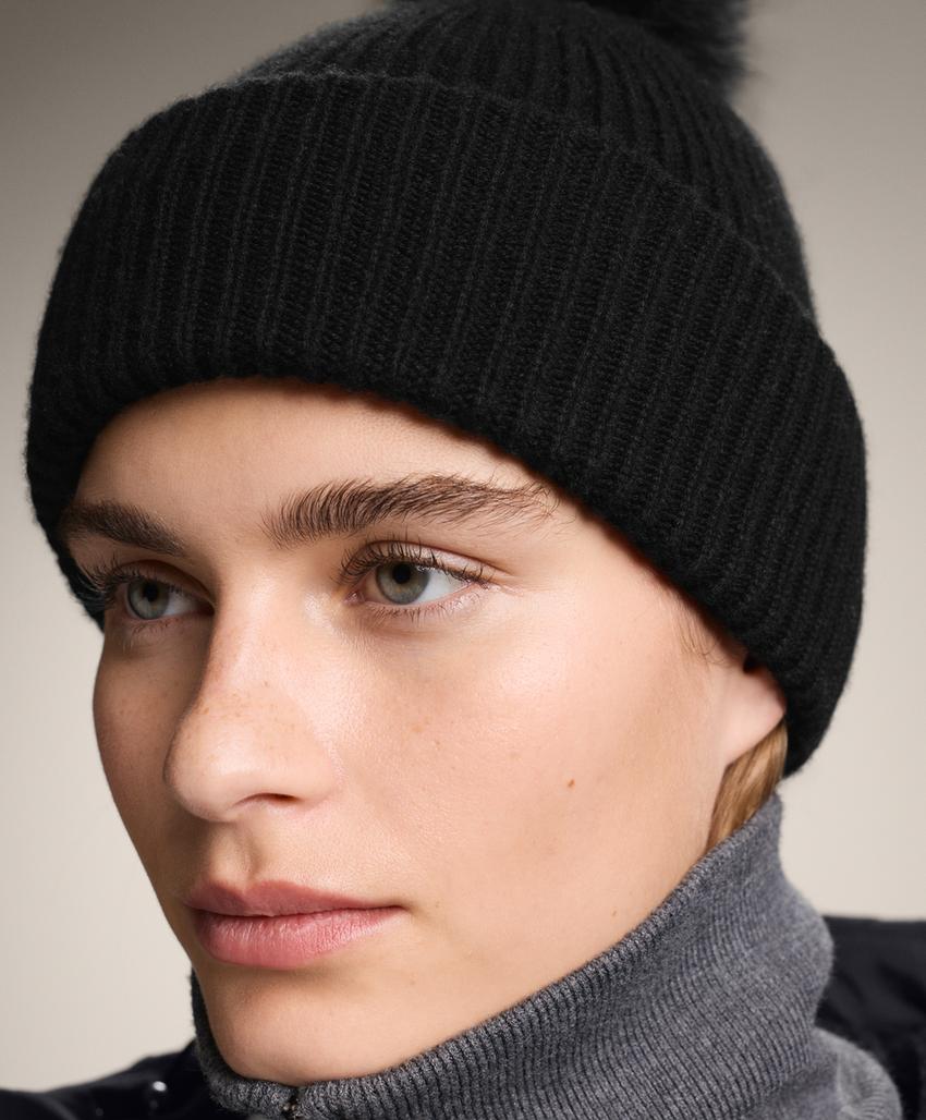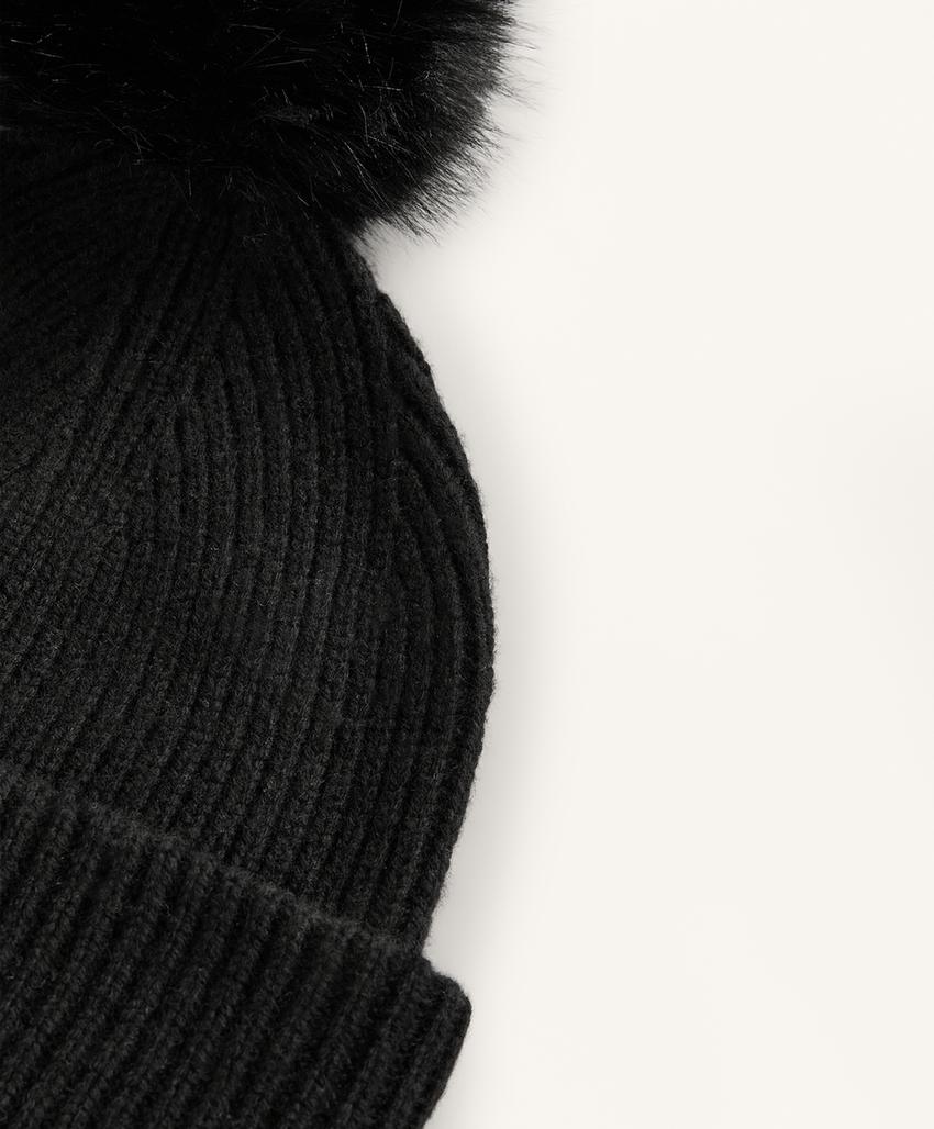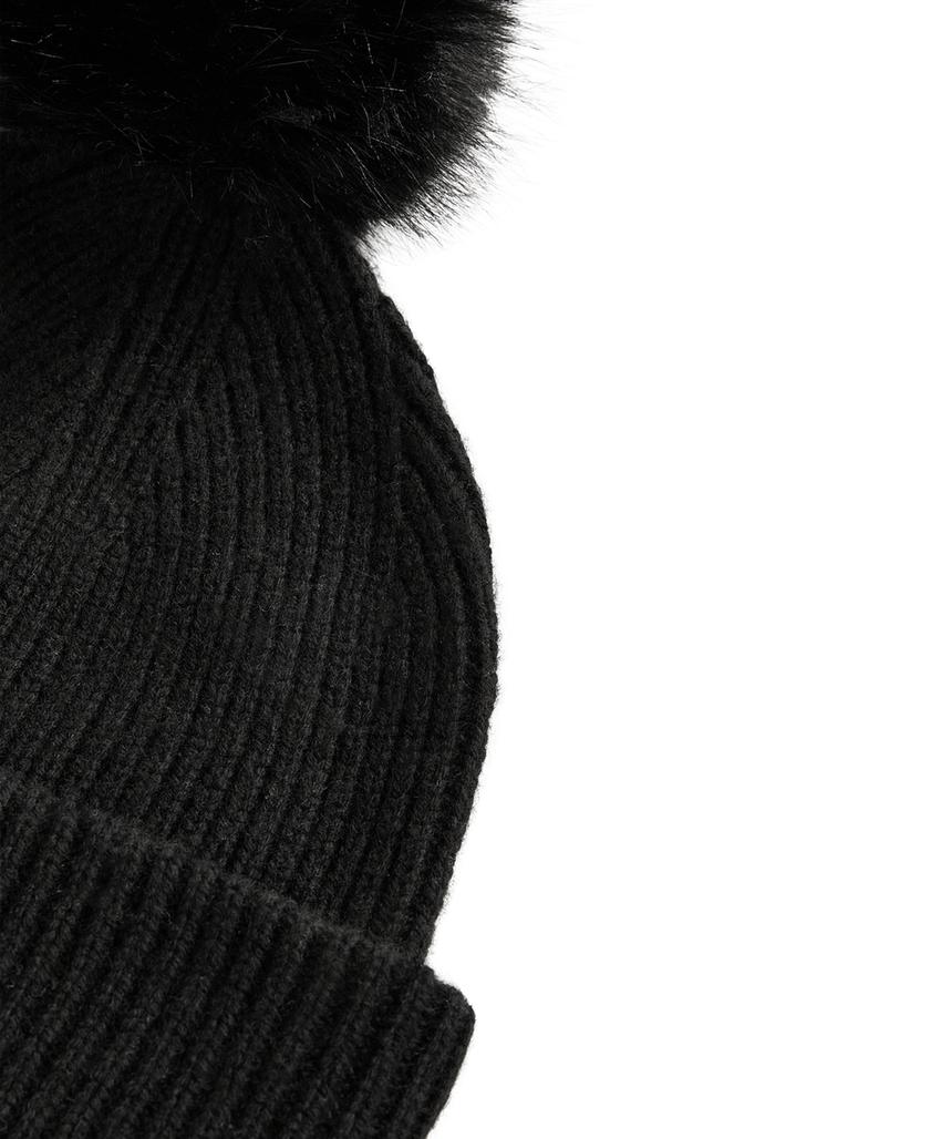 Wool blend knit hat with pompom BLACK | 3067/434/800